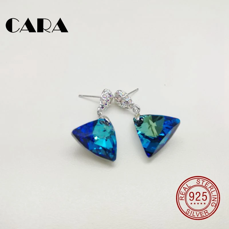 CARA новые антиаллергенные 925 пробы серебряные серьги треугольные Австрийские висячие серьги с кристаллами для сережек SWAROVSKI CARA0197