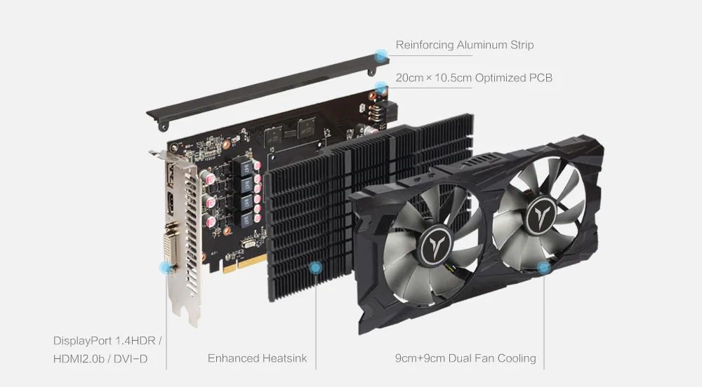 Двойные оптимизированные вентиляторы обеспечивают большую производительность воздушного потока и обеспечивают крутой и тихий игровой опыт.