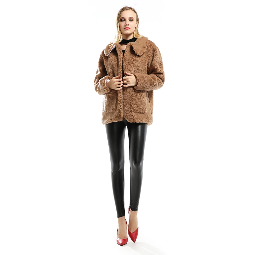 Edgension Для женщин толстый теплый поярок куртка более Размеры D с длинным овечьей
