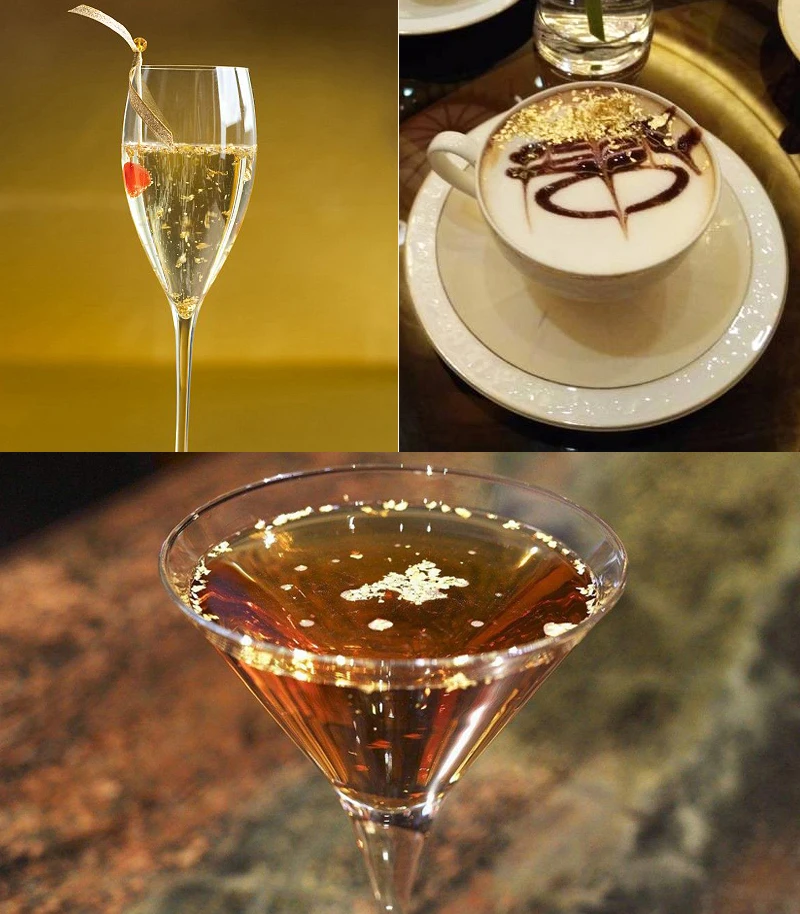 Съедобное золото используется, начиная с древних египетских времен, как «votive» еда. Так используется с 2,000 года до н. Э., мы также стали наблюдать за использованием золота в сакральных целях как пищи в Китае и как украшение для еды в Японии. Практическое использование съедобного подлинного золотого листа в качестве украшения, прибыл затем в Европу и широко используется в течение XV века для банкетов, организуемых властителями итальянских лордов.