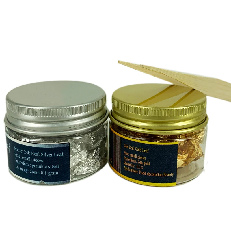 0,1 г каждого съедобные с покрытыем цвета чистого 24 каратного золота и чистого серебра кукурузных хлопьев листьев и бамбуковый зажим для декорирования шоколада и торт, декоративно-прикладного искусства пищевые украшения