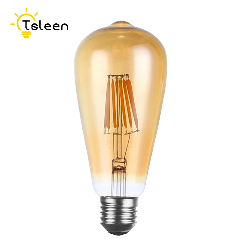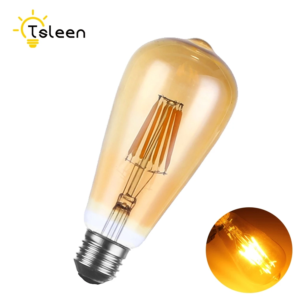 TSLEEN дешевая 4 шт./лот COB E27 светодиодная лампа накаливания 220В ST64 bombillas светлое стекло винтажная Светодиодная лампа Эдисона праздничное освещение для дома