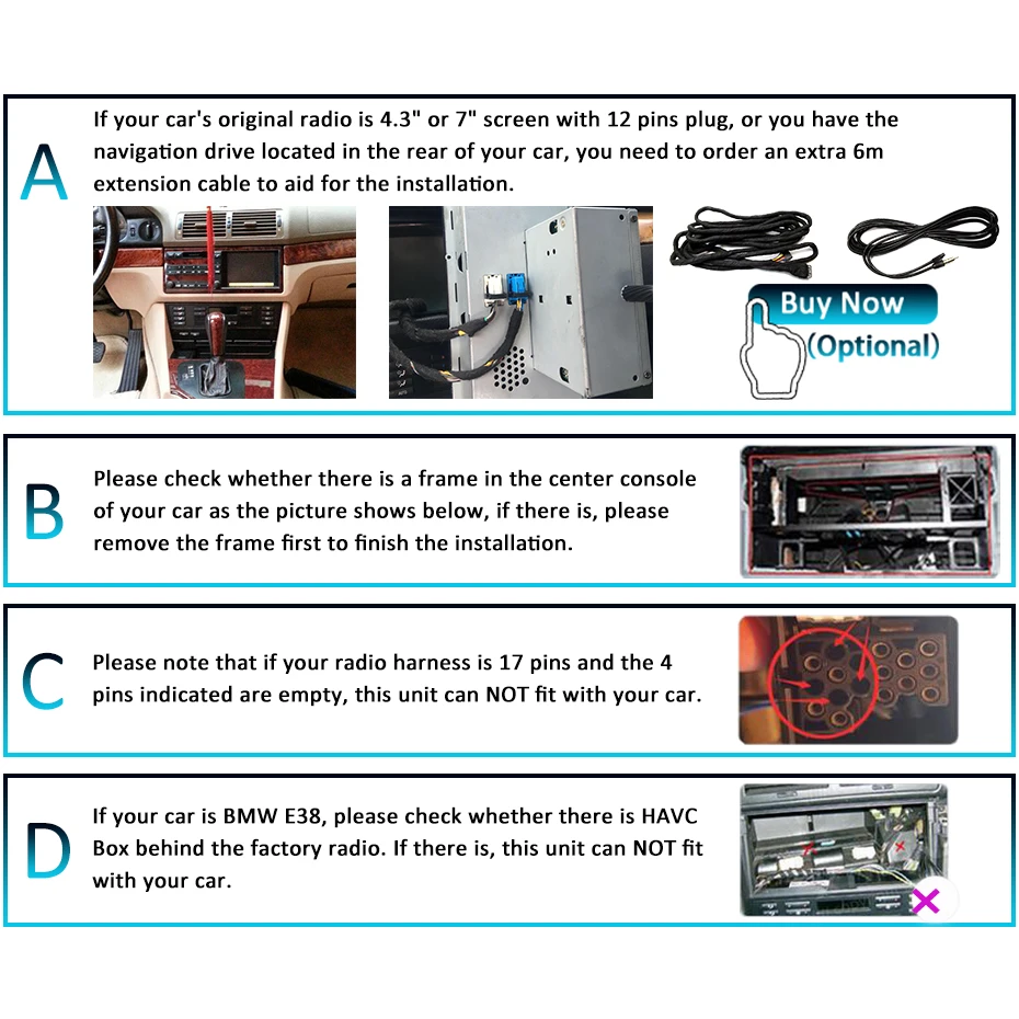 3. Пожалуйста, обратите внимание, что если ваш радиоприемник имеет 17 контактов и некоторые 4 контакта пусты, этот блок не может поместиться в вашем автомобиле. (Пожалуйста, свяжитесь с нами для получения дополнительной информации.)