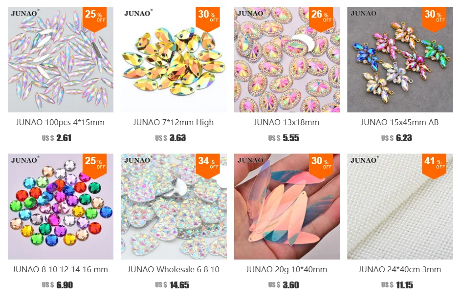 JUNAO 1000 шт 7x15 мм 17 цветов Кристалл пришить стразы акрил