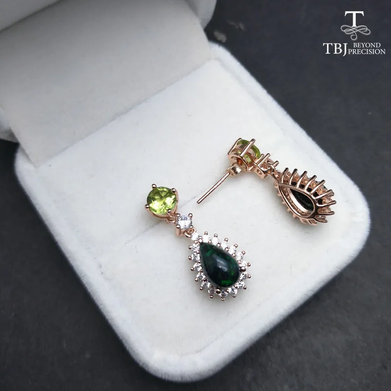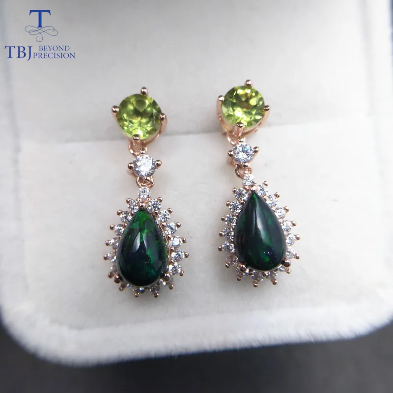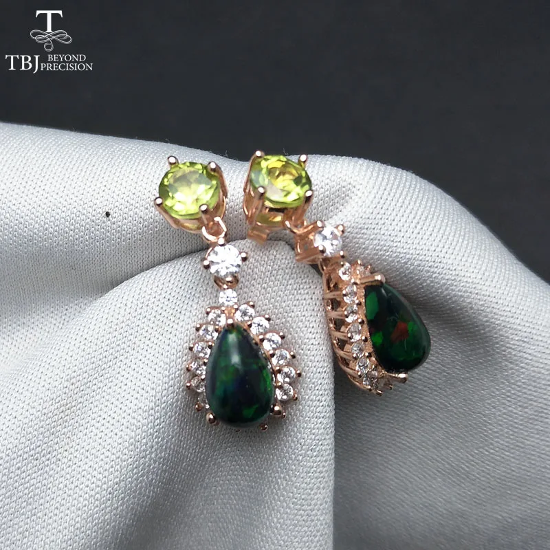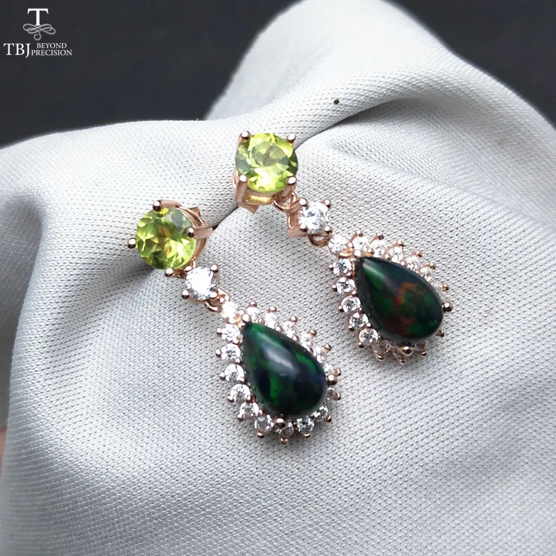 Товар: серьги из серебра 925 пробы с натуральными драгоценными камнями Материал: Стерлинговое Серебро 925 пробы, цвет розы Серебряный Вес: около 6,5г Центральный камень: 2 шт. натурального перидота круглые 5 мм 2 шт. натуральный черный опал pe6 * 9 мм Вес драгоценного камня: около 3 карат Драгоценный камень Качество: хорошее Боковые камни: кубический циркон Размер серьги: 9,7 мм * 23,61 мм