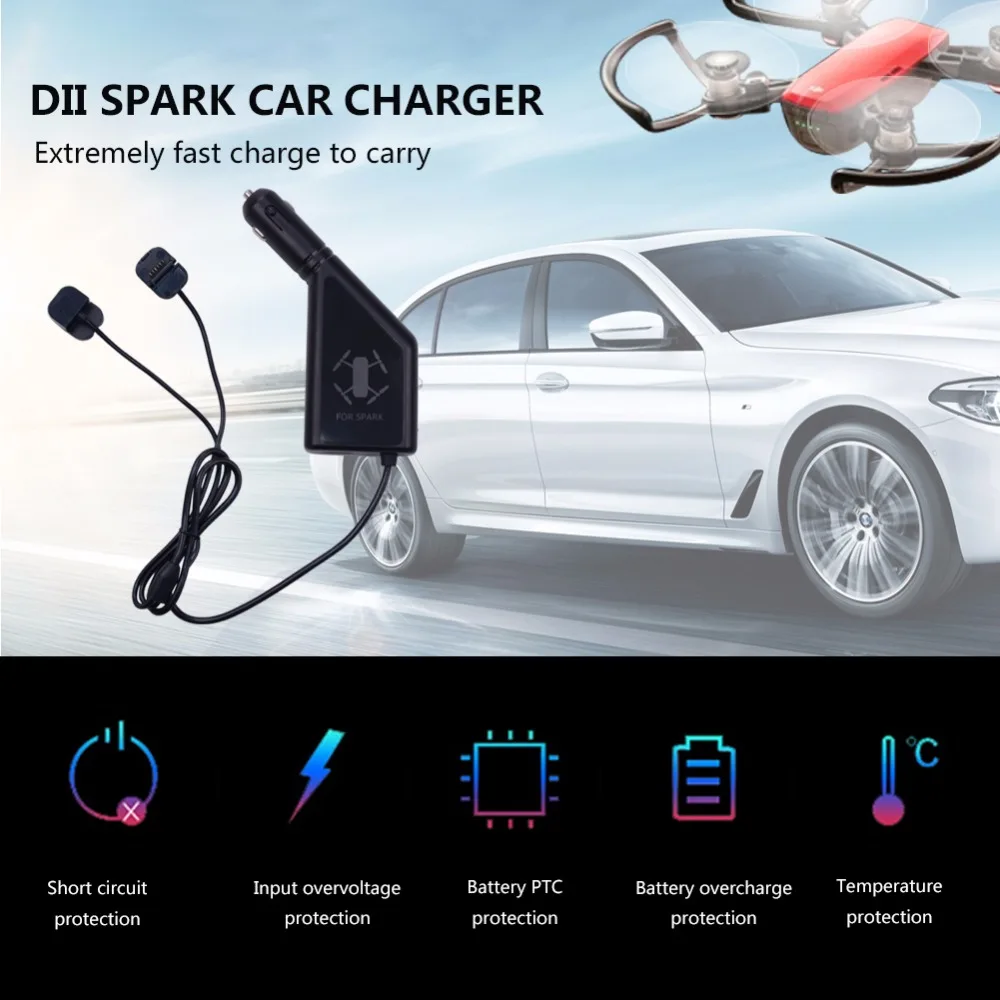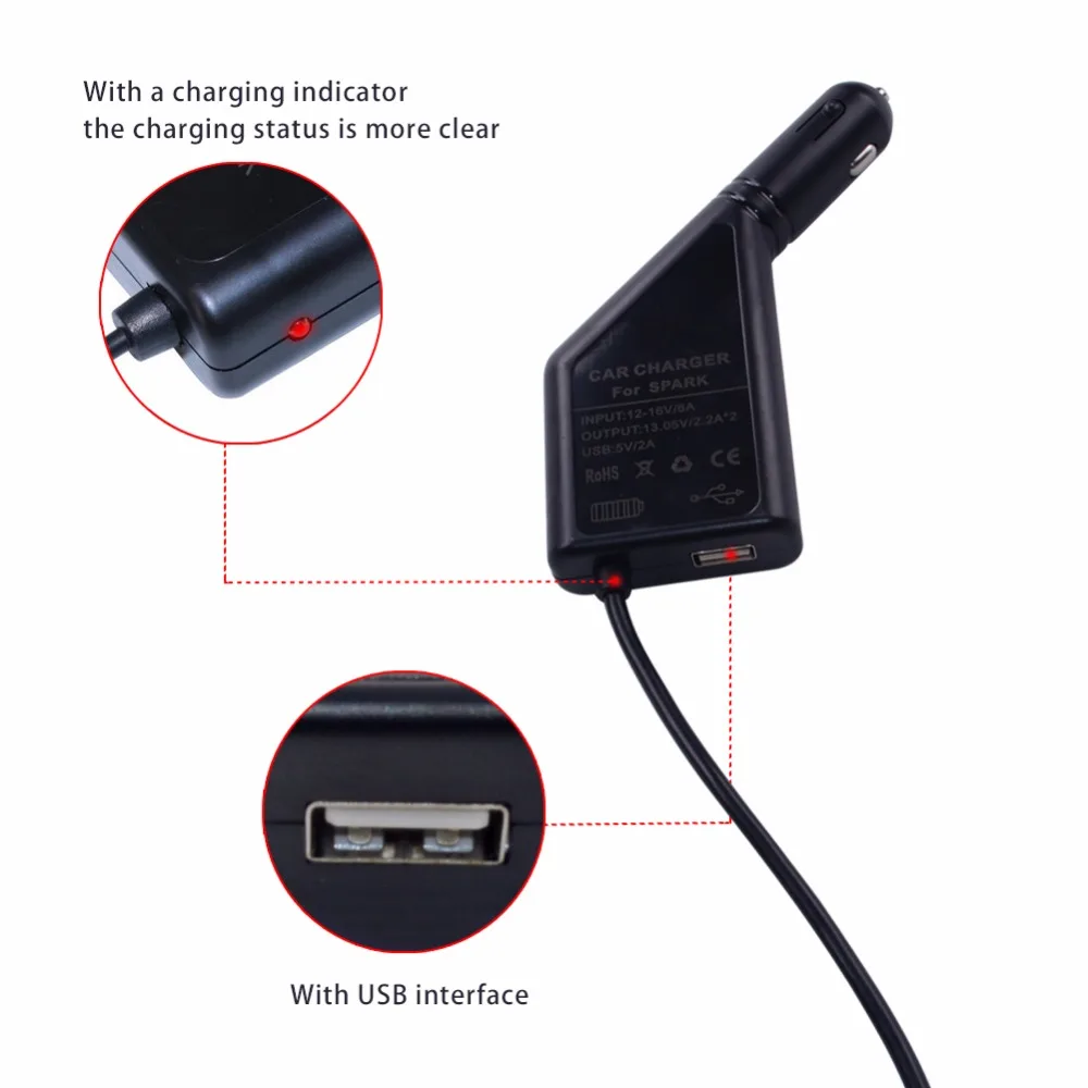 3 в 1 Автомобильное зарядное устройство Зарядка аккумулятора и usb-порт пульт дистанционного управления 2 кабеля Зарядка для DJI Spark аксессуары