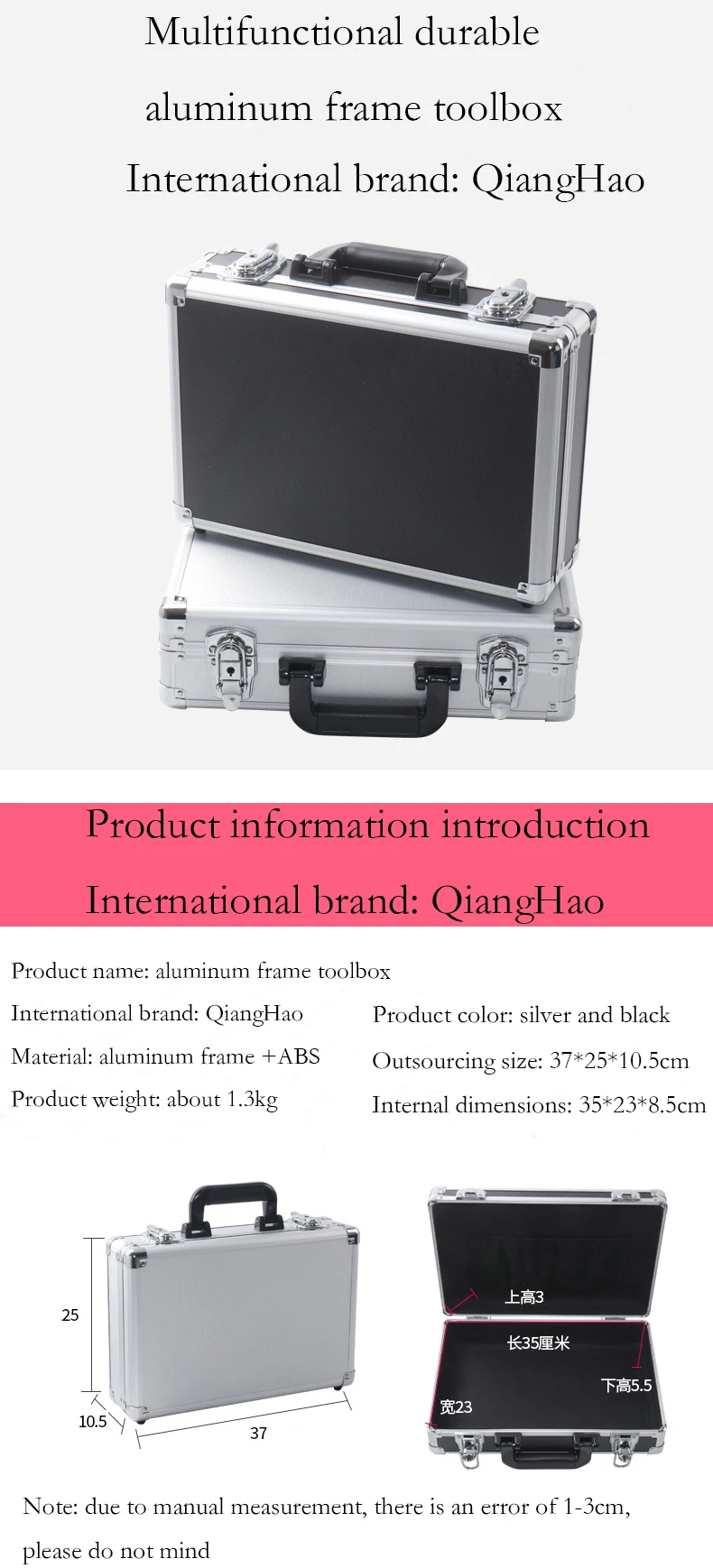 Внешний материал: рама из алюминиевого сплава + МДФ Внутренний материал: износостойкая ткань + сумка для хранения Материал поверхности: АБС-пластик Внешний размер: L37 * W25 * h10.5см Внутренний размер: L35 * W23 * H8.5cm Примечание: Замеры сделаны вручную, поэтому возможны 0,5-1 дюйм из-за проведения замеров вручную. Спасибо! Пожалуйста, подтвердите, что ваш товар может поместиться в эту коробку перед pruchase. Спасибо. Доставка: 1. Мы отправляем только на ваш подтвержденный адрес. Перед покупкой убедитесь в правильности адреса доставки. Пожалуйста, укажите свой номер телефона, так как транспортная компания может потребоваться во время доставки. 2. Все заказы будут отправлены в течение 3-5 рабочих дней после подтверждения оплаты. 3. Доставка авиа-отправление Почты Китая менее 2 кг товаров, обычно это занимает 25-45 рабочих дней (в некоторых странах может быть гораздо больше), если вам нужны товары очень срочно, пожалуйста, свяжитесь с нами для DHL и т. д. Мы рассчитаем стоимость доставки для вас. Доставка занимает 3-7 дней. 4. Мы отправляем по всему миру через EMS, DHL, UPS, FedEx, TNT, Почта Китая, E-packet, Singapore post, Почта Гонконга и так далее. Мы не можем контролировать время доставки, потому что он обрабатывается третьей вечерние службой, но если посылка не прибыла в течение ожидаемого времени, пожалуйста, свяжитесь с нами, мы поможем вам отследить его и дать вам удовлетворенный ответ. 5. Мы не несем ответственности за любые таможенные пошлины или налог на импорт.