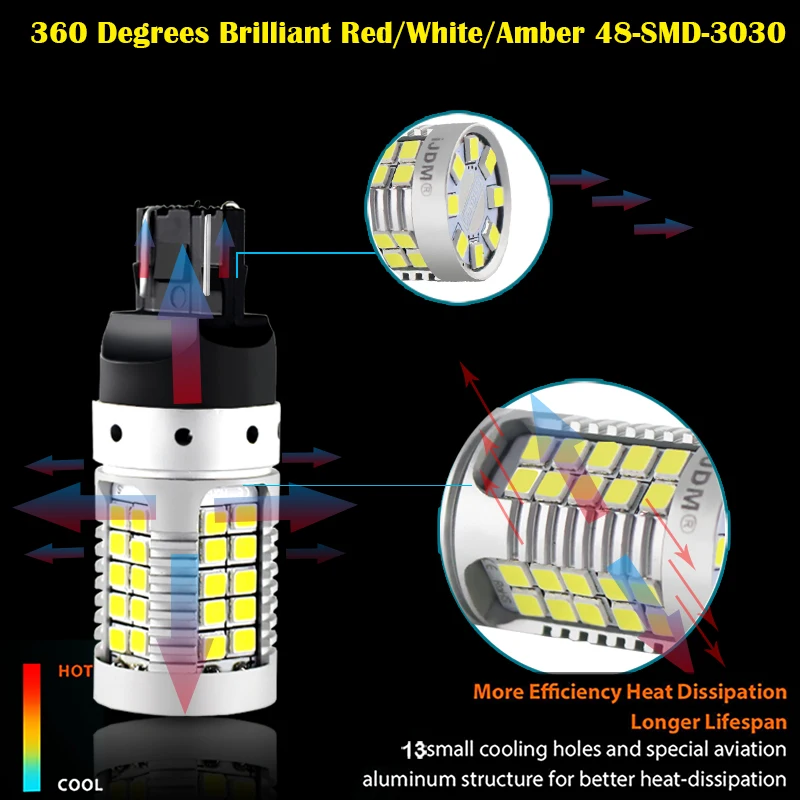 На этой странице в iJDM эксклюзивный дизайн ошибок резистор не требуется 360 градусов дизайн наивысшей мощности 48-SMD-3030 7443 T20 W21/5 Вт ярко-красный/6000K белый/желтый светодиодный лампы для автомобиля задние светодиодные светильник И стоп-светильник, сигнальный светильник s и резервный задний светильник s. Когда обычного светодиодный лампы недостаточно, вам нужна совершенно новая Обновленная вводная линия iJDM эксклюзивный светодиодный лампы. Эти iJDM-только эксклюзивный дизайн 21 Вт 3030 высокой мощности 7443 светодиодный лампы хороши, как задний светильник и стоп-светильник, указатель поворота, светильник s и резервные задние фонари, светильник s. Использовать. 8 штук 3030, что загорает светильник, как фонарь, и когда вы соединяете его с 40 3030 светодиодный светильник s сбоку, вы сможете испытать знаменитые 360 градусов по шкале Мооса освещения, что Вентиляторы автомобиля были ровными об этом. IJDM эксклюзивный дизайн светодиодный лампы, что является более высоким эшелоном, чем стандартная линия. Это похоже на покупку автомобиля с премиальной отделкой-вы можете просто почувствовать, что каждая разница исходит от линии высокого класса. Вы можете найти только линию на iJDM