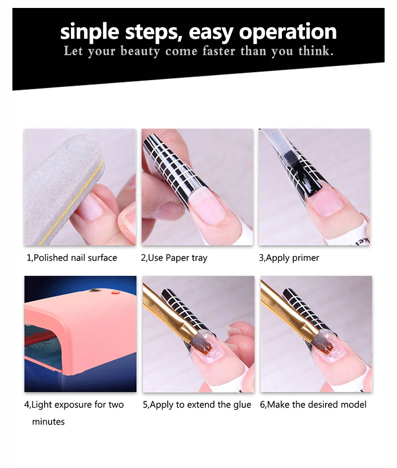 3. Используйте форму для ногтей, нанесите строительный гель и вылечите в течение 3 минут.