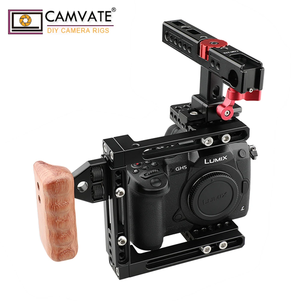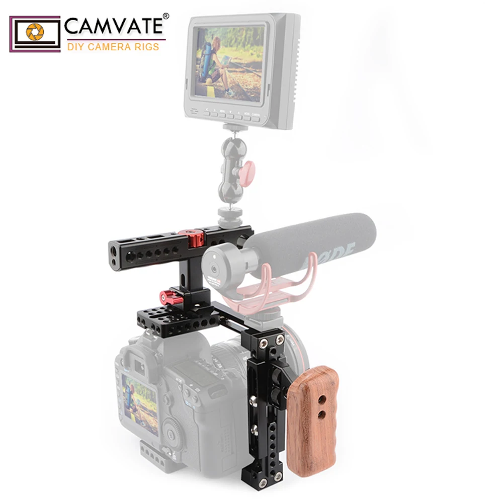 Установка для камеры CAMVATE с деревянной правой ручкой для Canon 60D,70D,80D,90D,Nikon D3200,D3300,D5200,D5500,Sony a58,A99,a7,a7II,GH5/GH4/GH3/GH2