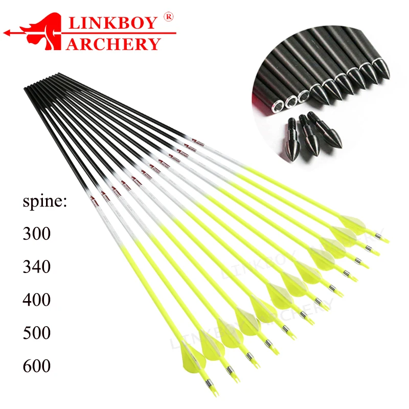 12 шт. стрела из углепластика для стрельбы из лука Sp300 340 400 500 600 флуоресцентная желтая стрела для стрельбы из лука id6.2мм защитное кольцо для охоты
