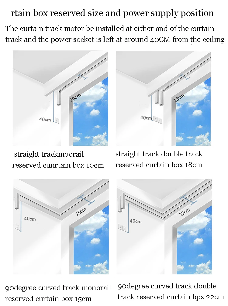 Треки 1 м-6 м Продукты включают в себя Один мотор для штор DT52E, напряжение 220 В, 50 Гц Один трек Набор аксессуаров для треков DC1600remote управляют одним Пожалуйста, сообщите нам конкретную длину, которая вам нужна. Мы предоставим Вам длину по индивидуальному заказу