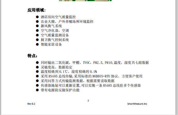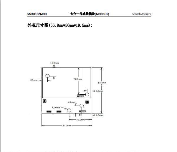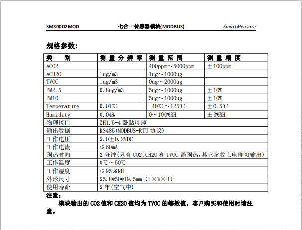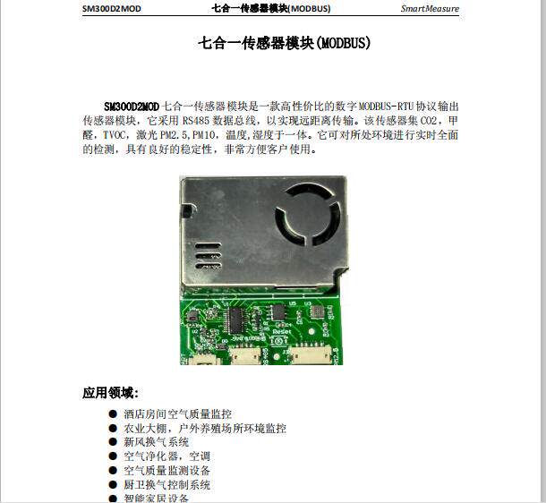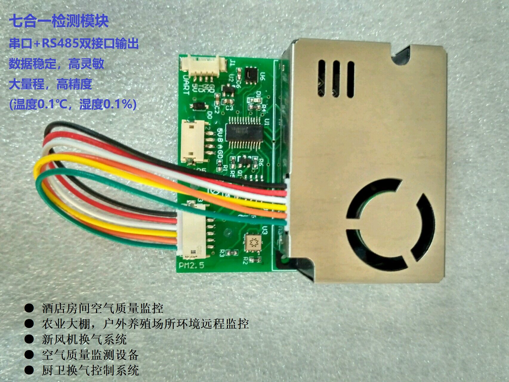 7-в-1 модуль датчика 485 выход с адресом Биты Он передается шиной RS485 и принимает стандартный протокол MODBUS-RTU, который удобен для клиентов. ● Используйте метод ответа на вопросы для передачи данных мониторинга и считывания данных по мере необходимости ● Адрес датчика может быть сброшен, и Одна шина RS485 может быть подключена к нескольким датчикам.