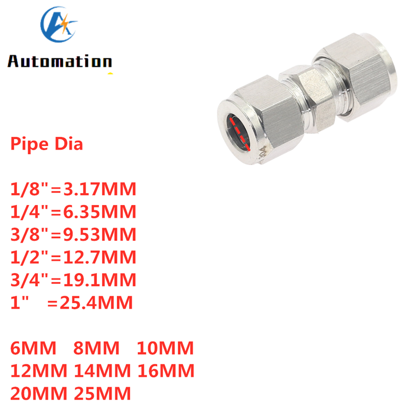 Подходит для труб SS Наружный диаметр: 3 мм, 4 мм, 6 мм, 8 мм, 10 мм, 12 мм, 1/8 ",1/4",3/8 ",1/2"