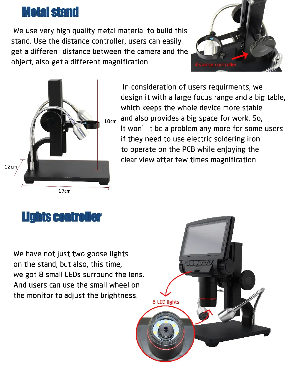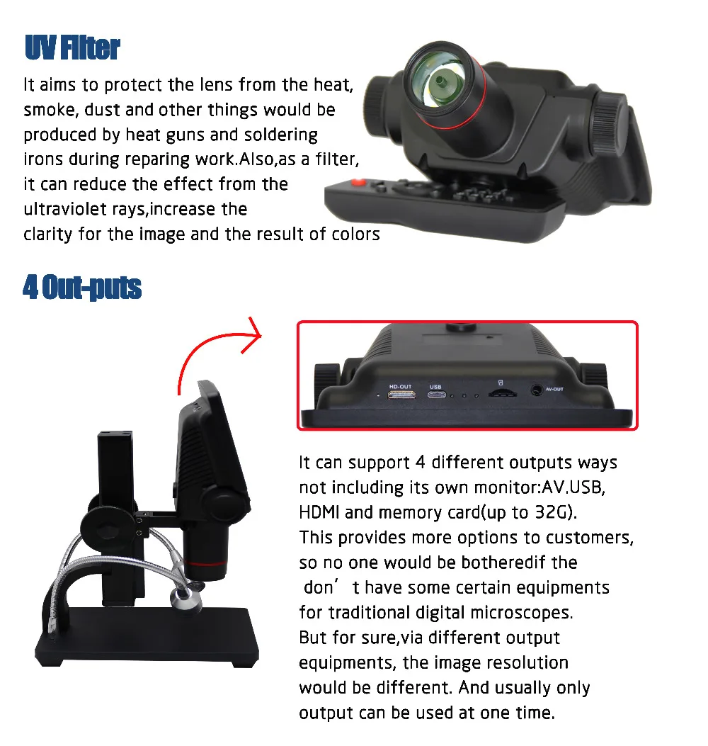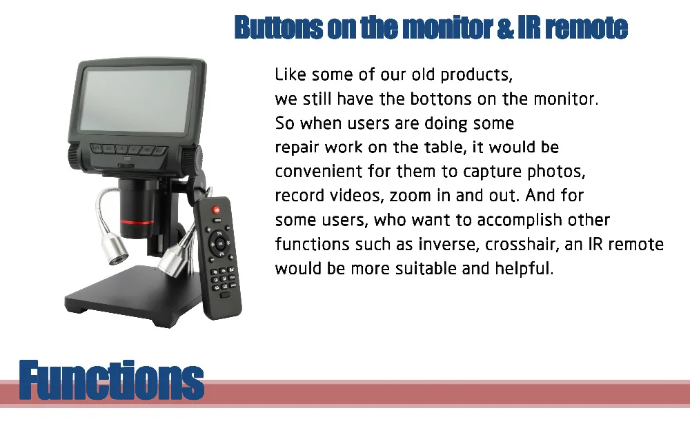 5-дюймовый ЖК-дисплей: увеличено разрешение и размер делают все лучше, все, что от съемки видео, что делает изделие совместимым с фотосъемка для анализа изображений, всё более четким, и независимо от того, какой промышленности используется микроскоп, он может удовлетворить все требования.