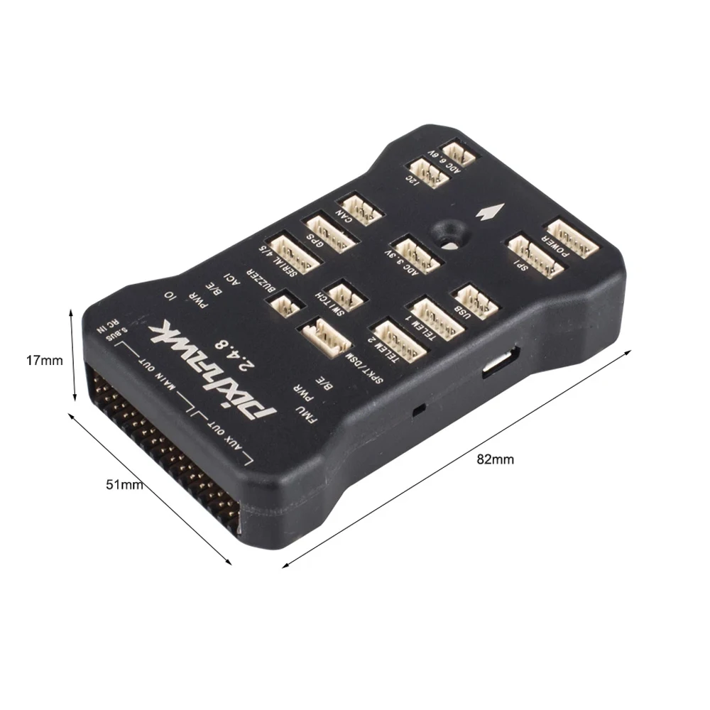 -Усовершенствованный 32-разрядный процессор CortexM4 ARM с высокой производительностью, может работать с операционной системой RTOS NuttX в реальном времени; -Интегрированный резервный источник питания и резервный контроллер сбоя, основной контроллер можно безопасно Переключить на резервный контроль; -Обеспечивает избыточный вход питания и функцию передачи неисправностей; -14 * выход ШИМ/привода; -Интерфейс шины (UART, I2C, SPI, CAN); -Обеспечивает автоматический и ручной режим; -Цветная светодиодная лампа; -Многотонный звуковой интерфейс; -Micro SD для записи данных о полете; Спецификация: Плата интегрируется с PX4FMU + PX4IO Pixhawk с новым 32-битным чипом и сенсорной технологией Процессор: 32 бит 2 м флэш-память STM32F427 Cortex M4, с аппаратным блоком обработки плавающей точки Основная частота: 256 K, 168 MHZ RAM 32-разрядный процессор STM32F103 backup co Датчик: L3GD20 3-осевой цифровой 16-битный гироскоп LSM303D 3 оси 14 бит акселерометр/магнитометр MPU6000 6-осевой акселерометр/магнитометр MS5611 Высокоточный барометр Интерфейс: 5 * UART, 1 * совместимый высокое напряжение, 2 * аппаратное управление потоком 2 * банка Спутниковый ресивер Spektrum DSM/DSM2/DSM-X Futaba SBUS совместимый вход и выход Входной сигнал PPM RSSI (ШИМ или напряжение) вход I2C SPI 3,3 и 6,6 VADC вход Внешний микро-интерфейс USB Цвет: черный Размер: 50x81x1 6 мм/2,0x3,2x0,6 дюймов Размер упаковки: 110x145x1 8 мм/4,3x5,7x0,7 дюйма Вес: 48 г Вес упаковки: 52 г