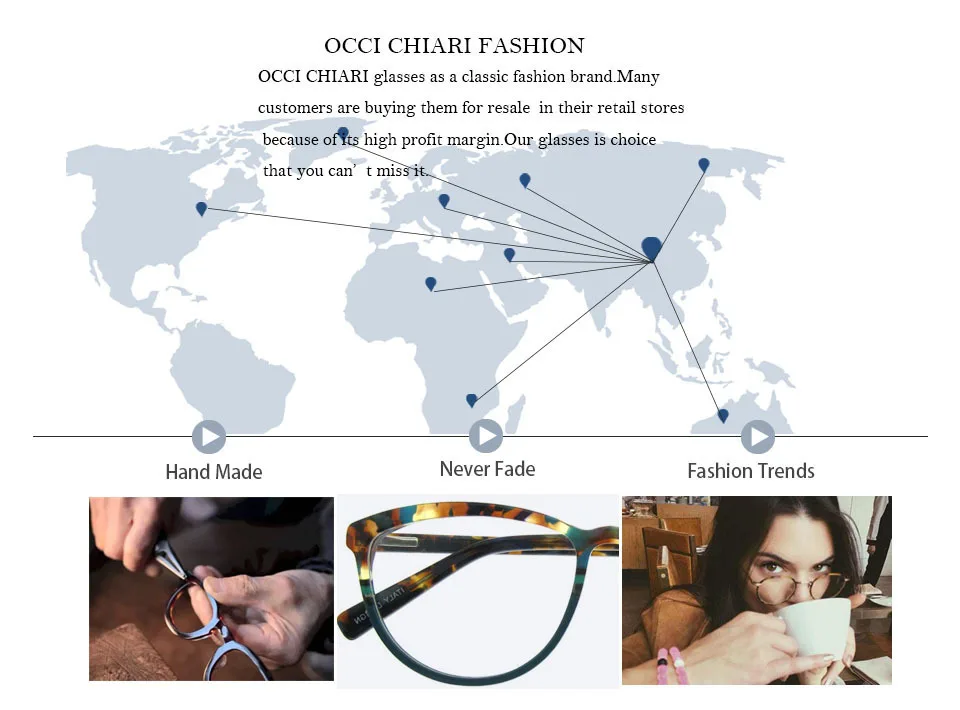 Мы используем настоящий ацетат, цвет никогда не выцветает.