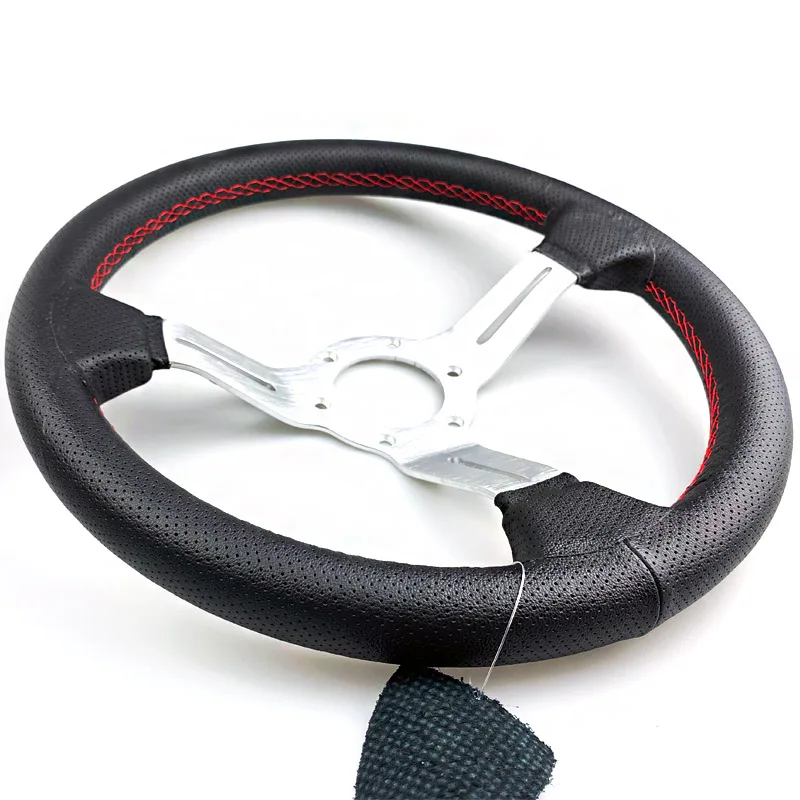 Гоночный спортивный 13 дюймов 330 мм Серебристый натуральная кожа ND ралли тюнинг Дрифт гоночный руль алюминий + кожа