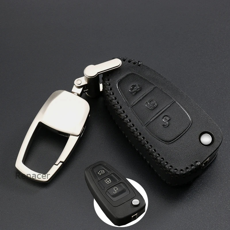 Новинка 2019 чехол из натуральной кожи для автомобильного ключа Ford Focus Fiesta Mondeo Ecosport
