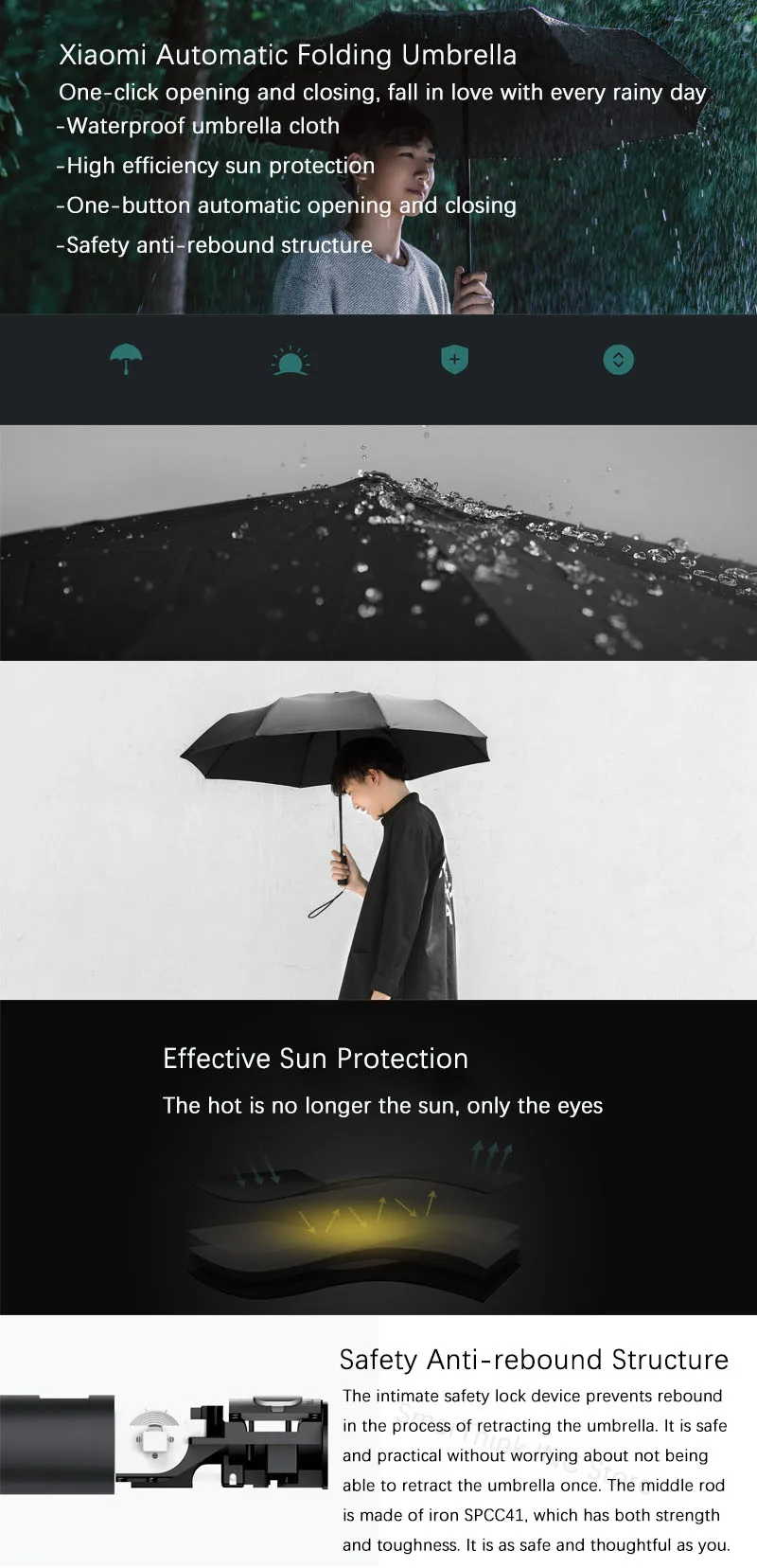 Xiaomi Mijia полностью автоматическая Солнечная дождливая Мужская и женская алюминиевая ветрозащитная летняя зимняя Xiaomi Mijia
