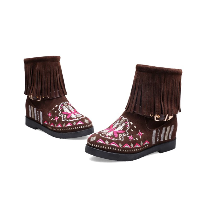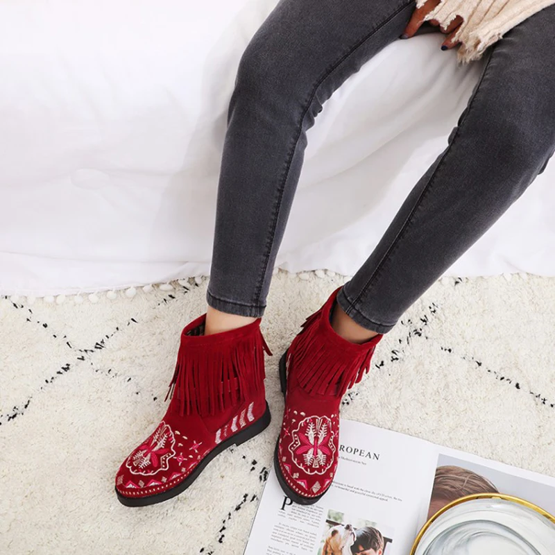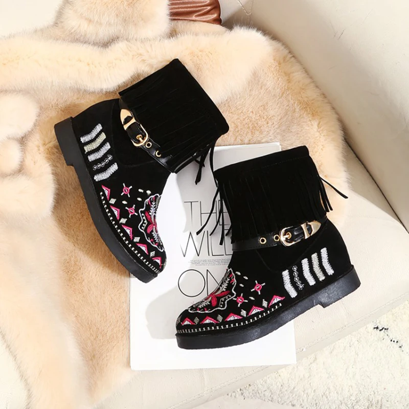 Женские ботильоны из флока черные бордовые ботинки с круглым носком на высоком