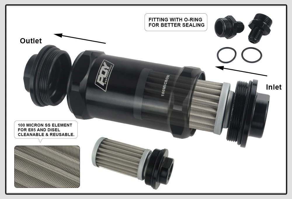 VR- PQY черный AN6 / AN8 / AN10 встроенный топливный фильтр E85 этанол с 100 микрон элемент из нержавеющей сталиVR5566/5567/5568