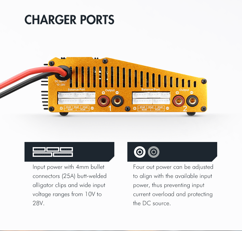 2. Зарядное устройство может использоваться с тремя типами литиевых батарей-LiPo, Lilo, LiFe-и имеет полностью интегрированный балансир ячеек.