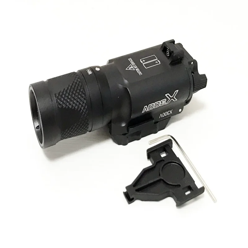 Содержимое посылкаЦельный ИК-фонарик X300V.Один кусок QD Pad.Вес: 210 гМатериал: алюминийЦвет: черный, DEТип рельса: 20 мм Weaver RailВыход: Постоянный белый/Мгновенный Белый/ИК-выходМаксимальный выход-белый светильник: 500 люмен 3 ВтТактический Время работы: 1,5 часовДлина: 105 ммBazel Диаметр: 1,10 дюйма (28 мм)Тип батареи: две штуки 3 в CR123A (не входят в комплект)Тип эмиттера: CREE R5Место происхождения: Китай