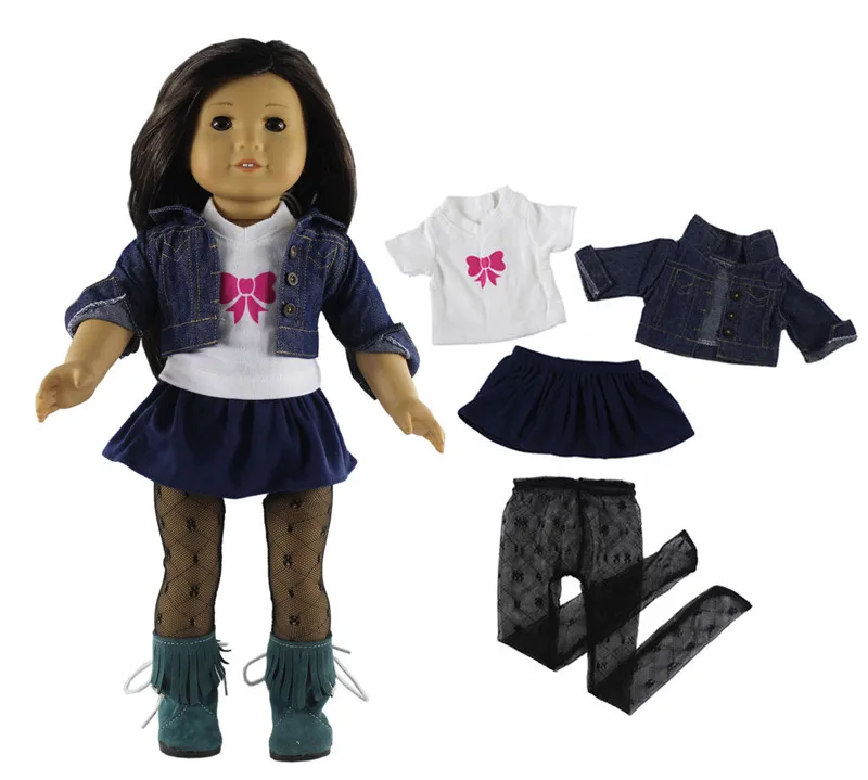 Новинка, 1 комплект, кукольная одежда, очки, сапоги, колготки и сумка для куклы 18 дюймов, американский стиль для девочек на выборUS $8,99 Долларов США/шт
