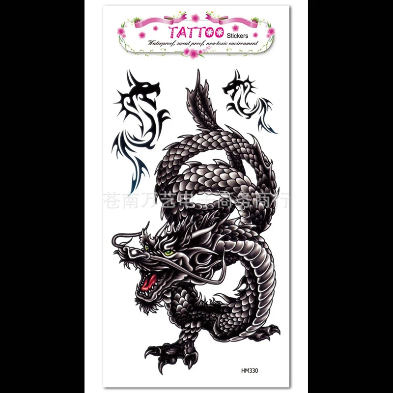 Татуировка 10x20,5 см Креативный дизайн в традиционном китайском стиле в виде черного дракона; Из водонепроницаемого материала и впитывает пот и наклейки-татуировки