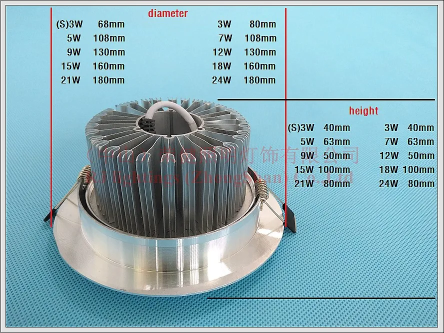 | Открытый Размер отверстия: | (S)3 Вт 60 мм/3 Вт 70 мм/5 Вт 90 мм/7 Вт 90 мм/9 Вт 120 мм/12 Вт 120 мм/15 Вт 140 мм/18 Вт 140 мм/21 Вт 165 мм/24 Вт 165 мм |
