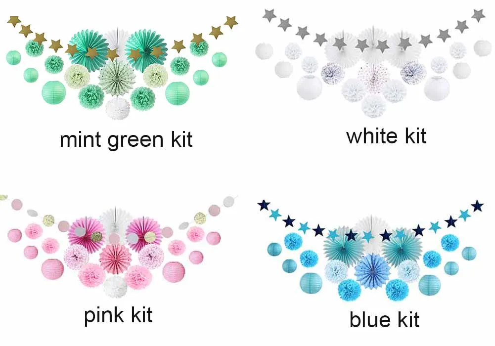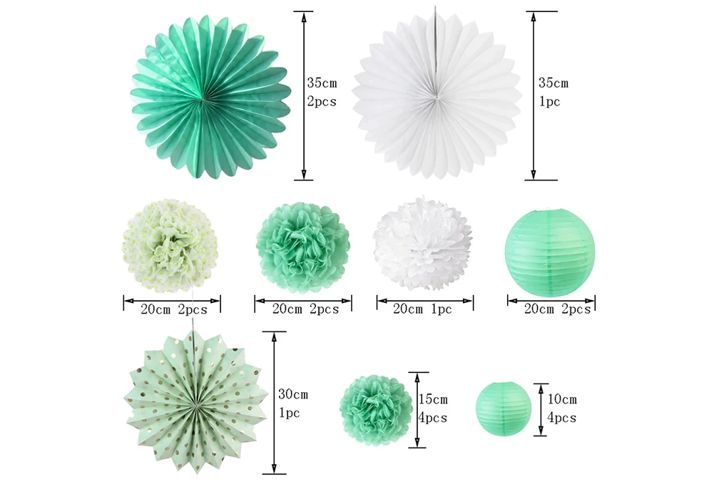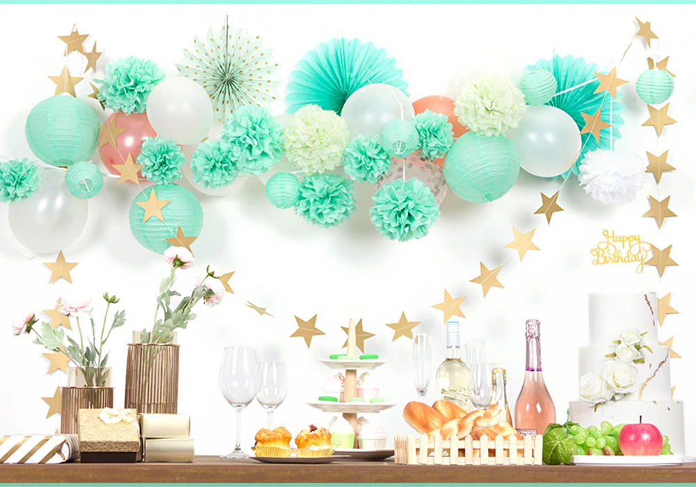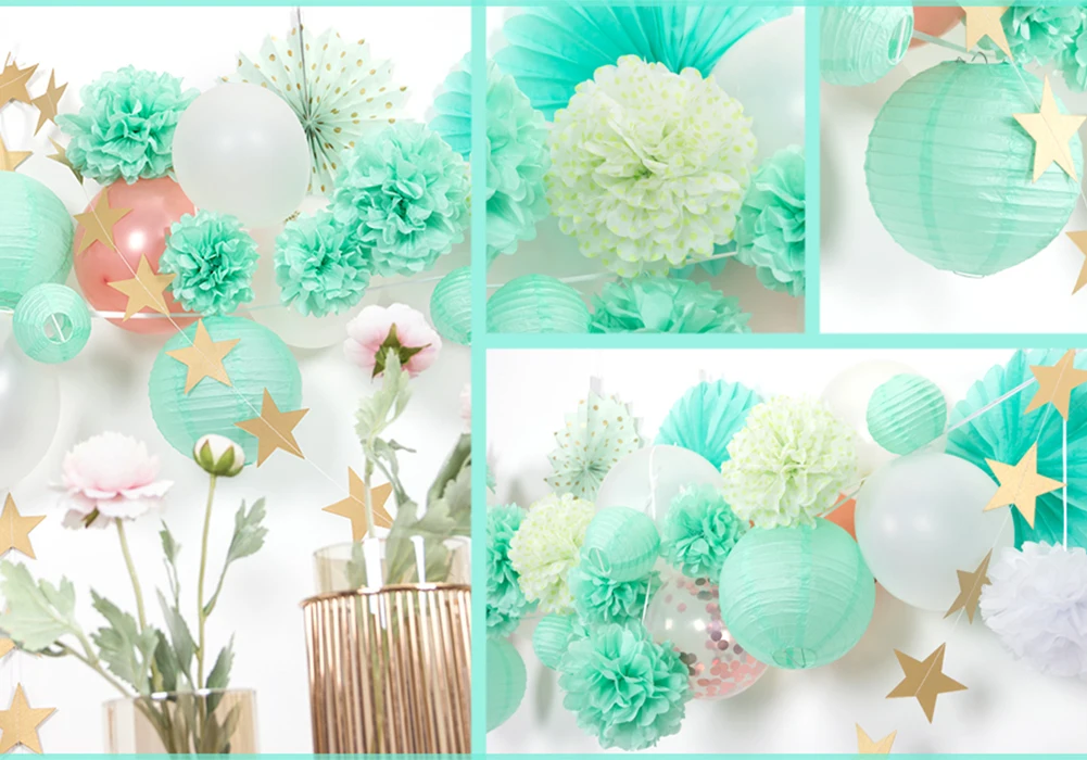 20 шт. мятно-зеленый комплект украшений для вечеринки, бумажные вентиляторы, фонари, Pom, звезда, гирлянда, день рождения, детский душ, свадебное украшение
