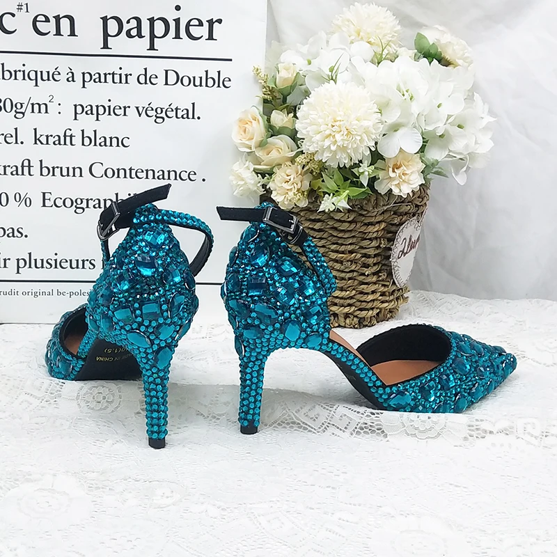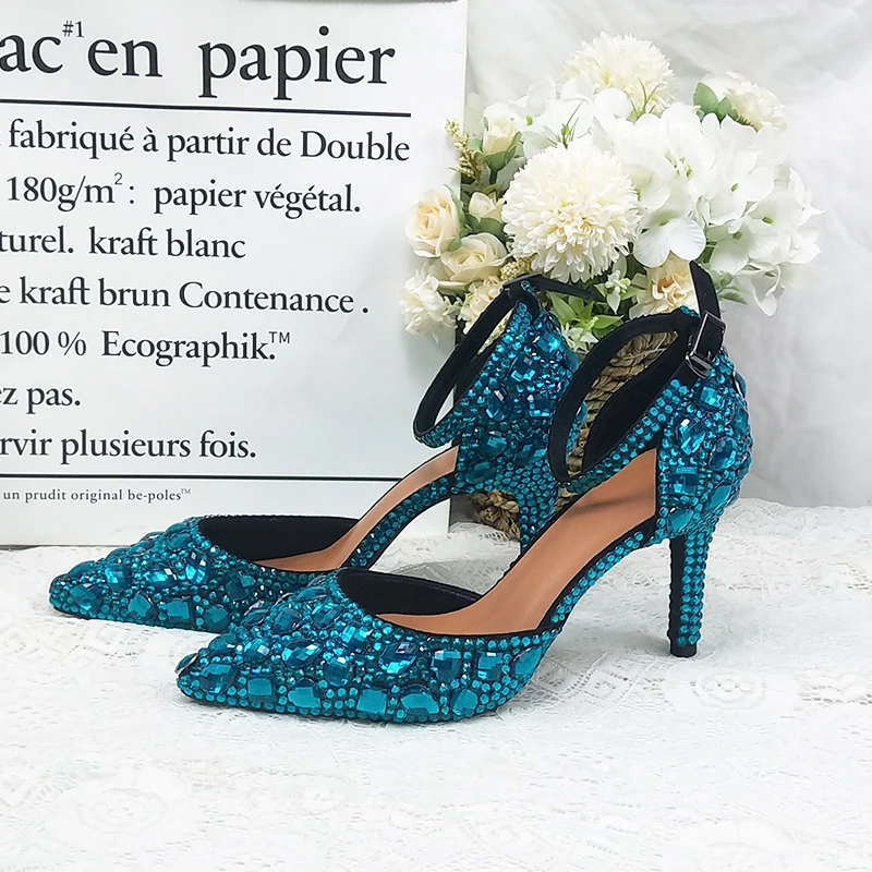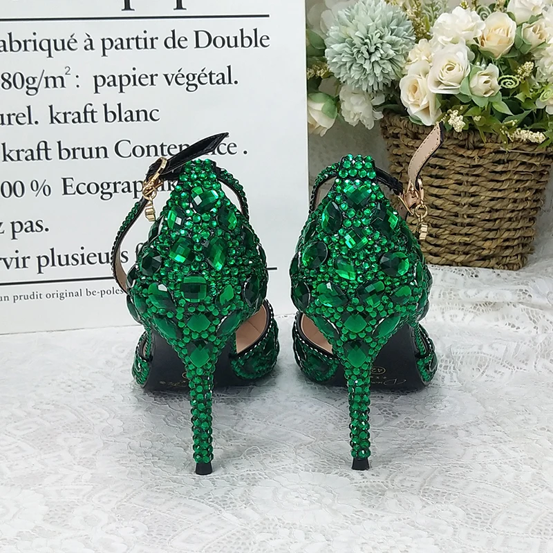 CHS969 обувь ручной работы изумрудно зеленый кристалл Стразы на ремешках платье