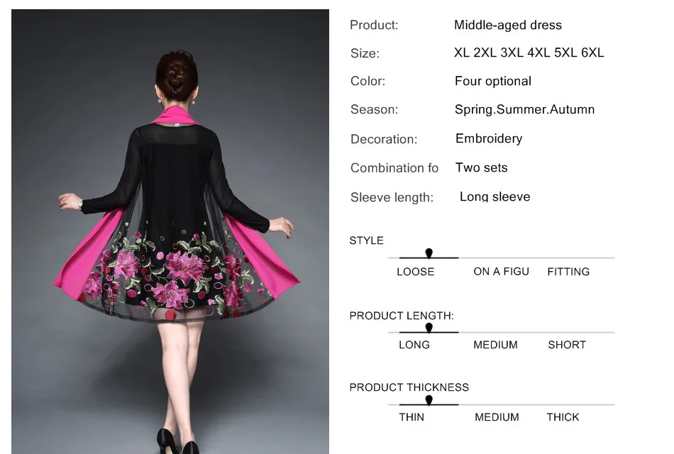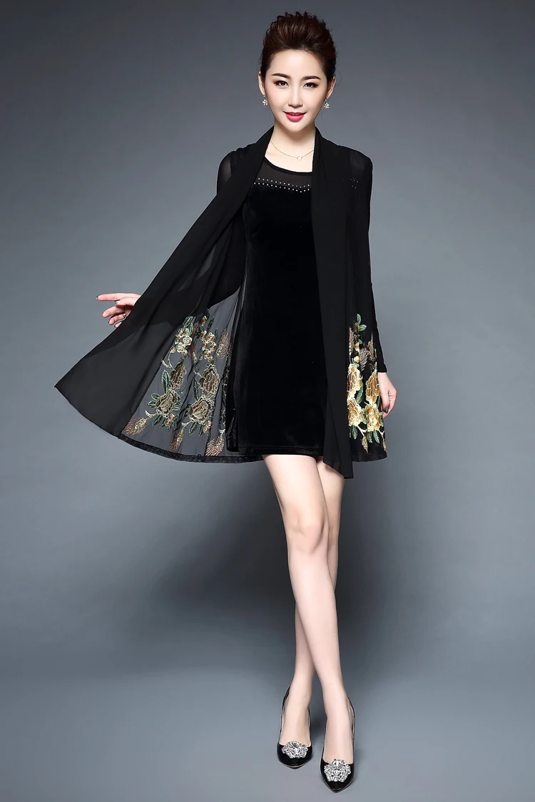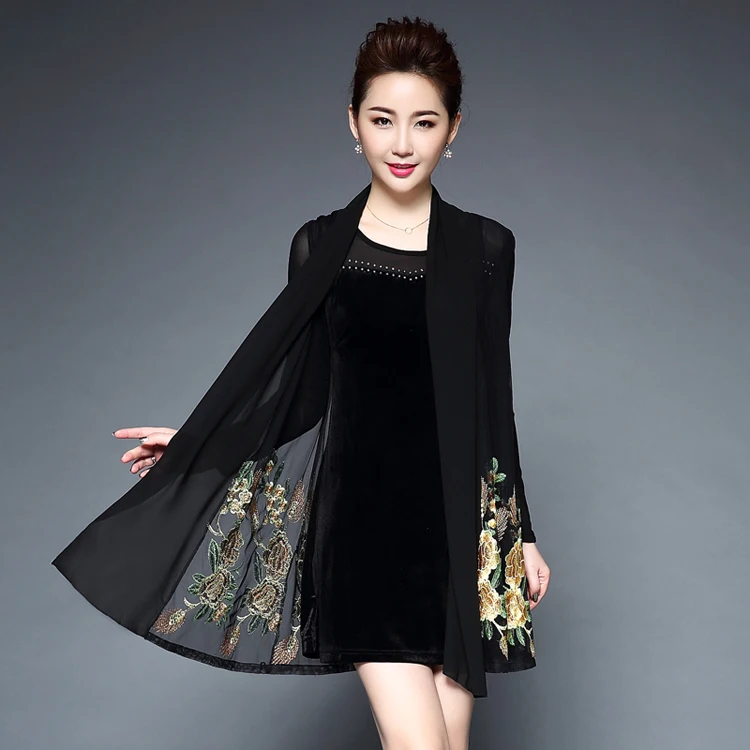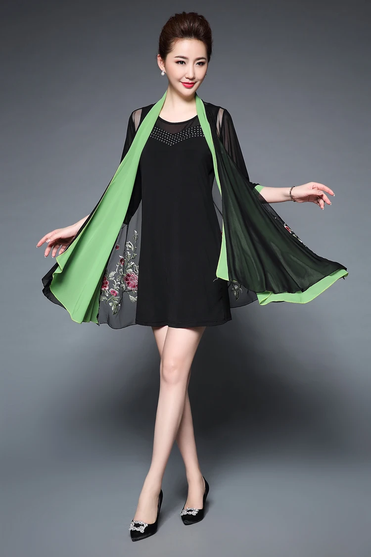 Женское Повседневное платье с цветочной вышивкой среднего возраста, весенне-летнее платье из двух частей, черные платья, вечерние платья размера плюс 6XL