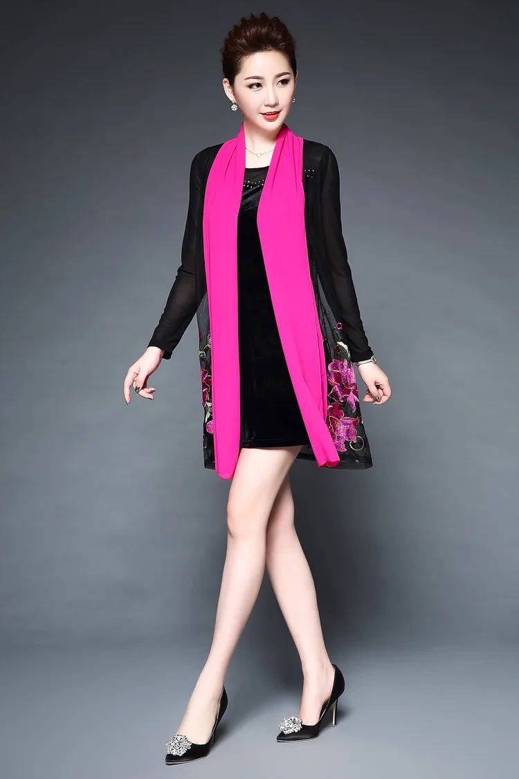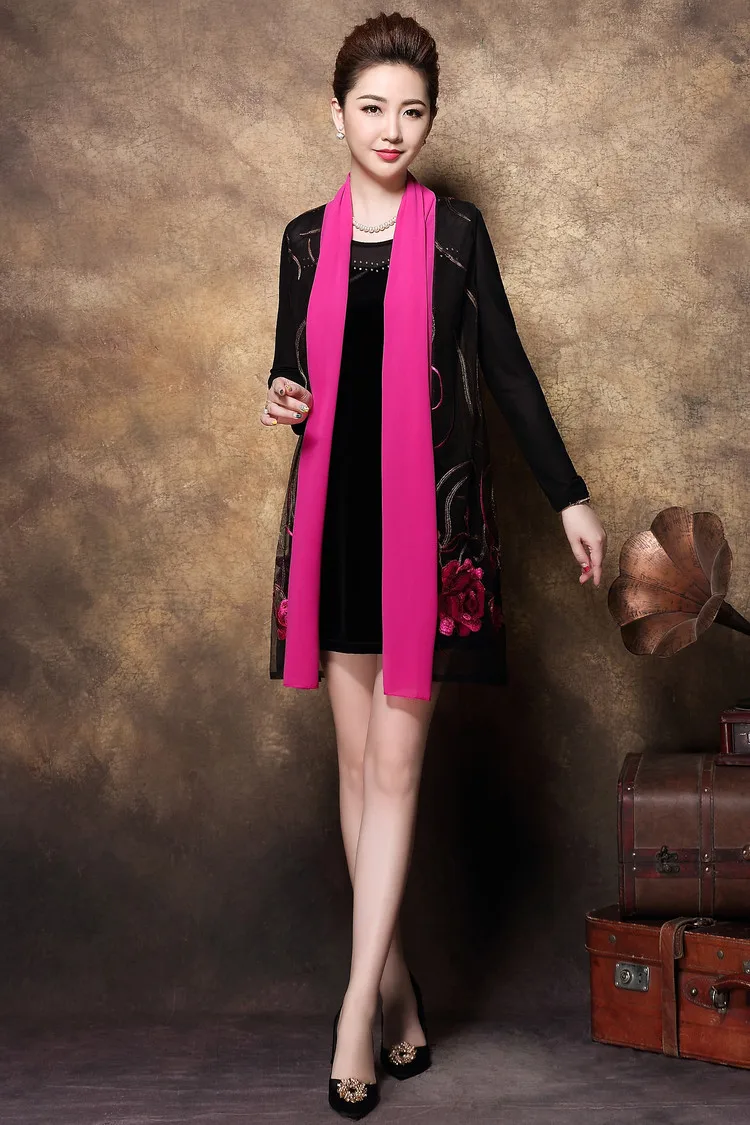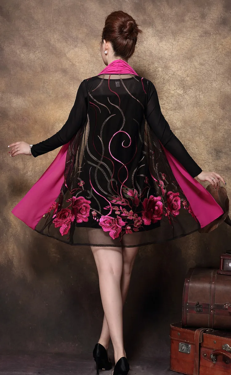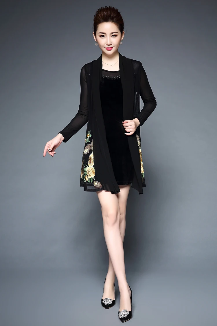 Женское Повседневное платье с цветочной вышивкой среднего возраста, весенне-летнее платье из двух частей, черные платья, вечерние платья размера плюс 6XL