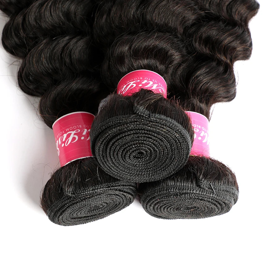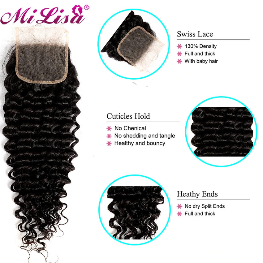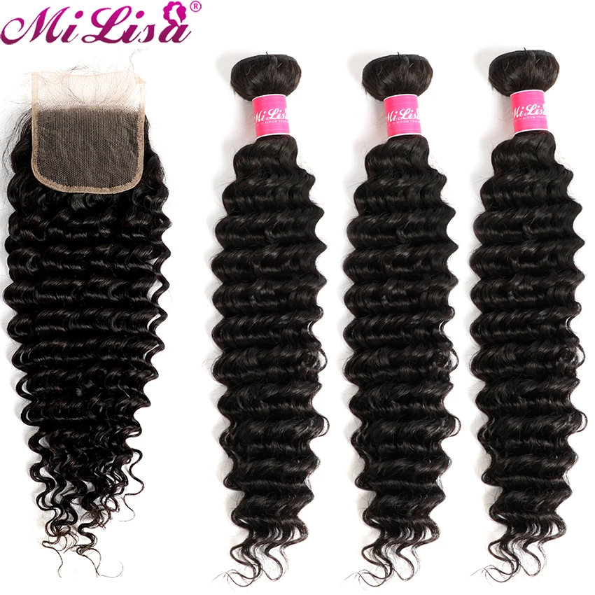 Mi Lisa бразильские волнистые пряди с закрытием 3 пряди человеческих волос Плетение с кружевной застежкой Remy глубокая волна пряди с кружевной застежкой