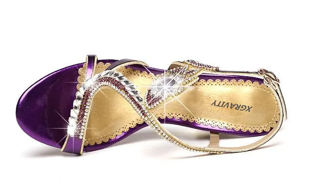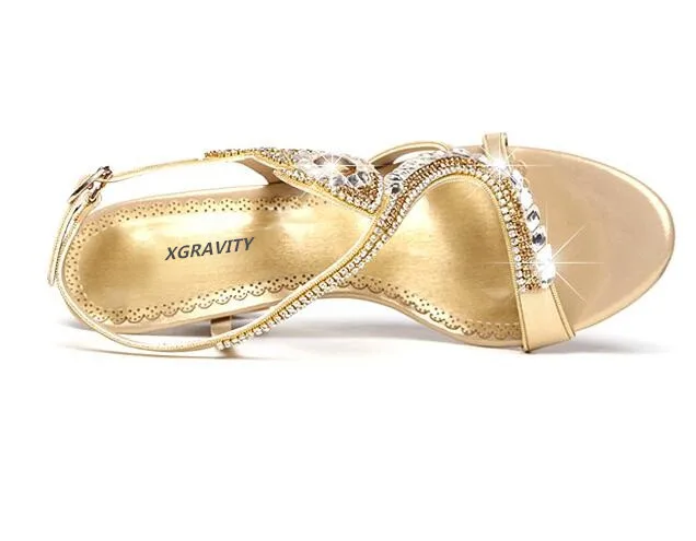 XGRAVITY 2021 женские пикантные туфли на выход, новинка, женские туфли на не сужающемся книзу массивном каблуке пикантные туфли с украшением в виде кристаллов Стразы на молнии; Женские дизайнерские элегантные дамские сандалии A002