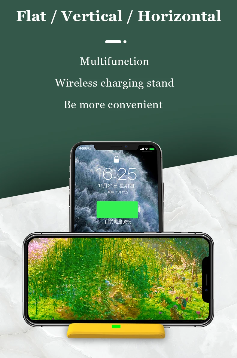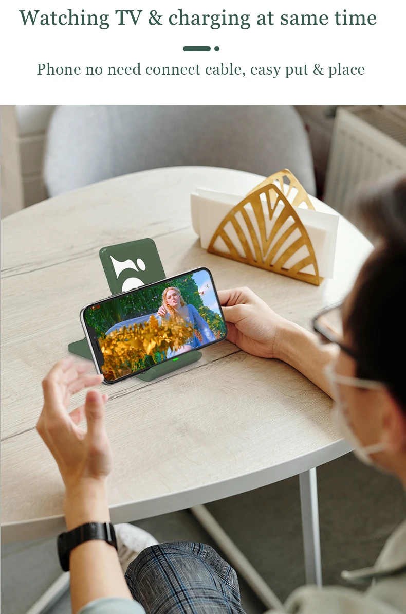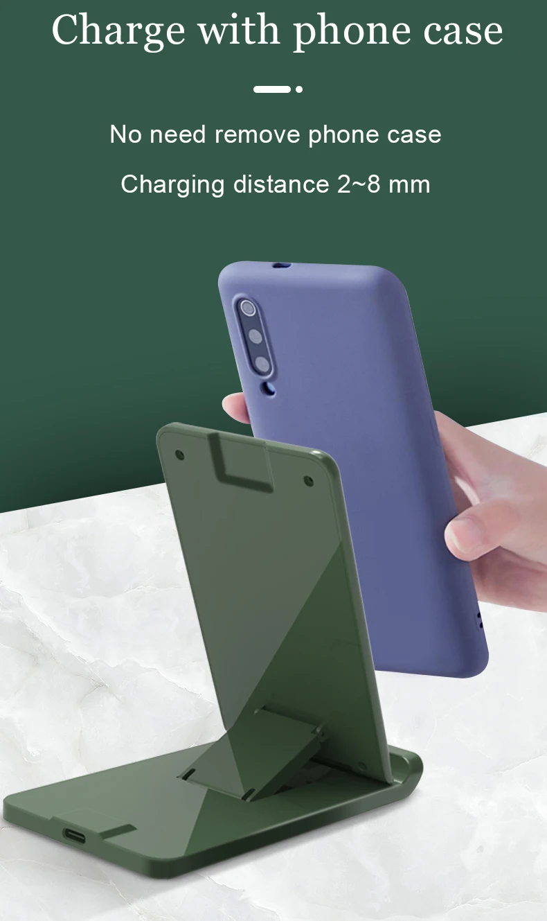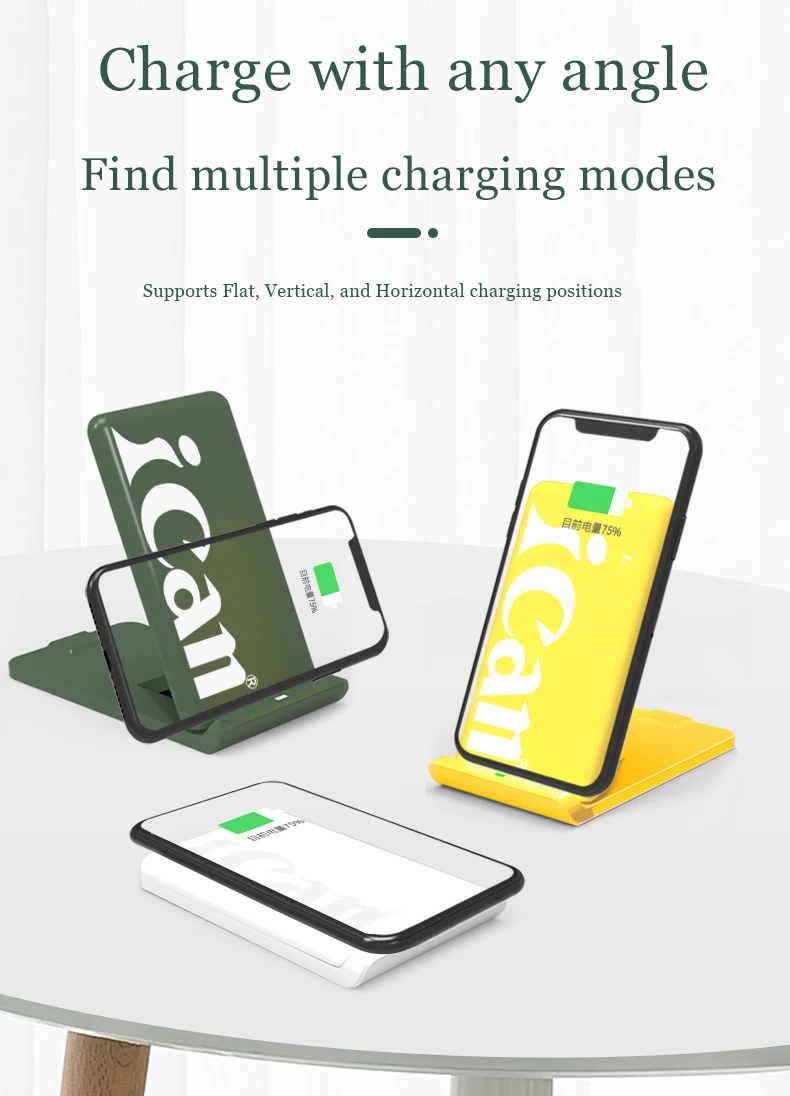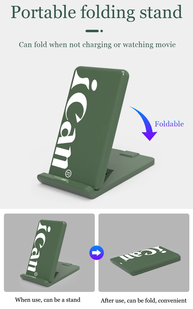 2. Складная конструкция, поддерживает плоское, вертикальное и горизонтальное положение зарядки для удобного использования.