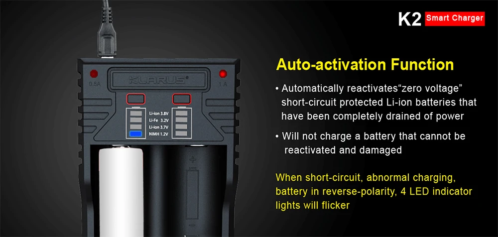 • Совместимость с: LiFePO4, 3,7 V/3,85 V li-ion, Ni-MH, Ni-Cd. Li-Ion: 26650 22650 18650 18490 17670 17500 16340 14500 10440 16340(RCR123A),Ni-MH, Ni-Cd:AA AAA AAAA C