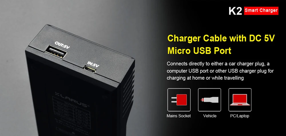 • Зарядный кабель 5 в постоянного тока, порт micro USB подключается непосредственно к автомобильному зарядному устройству, usb-порту компьютера или другой USB зарядной штепсельной вилке для зарядки дома или во время путешествий