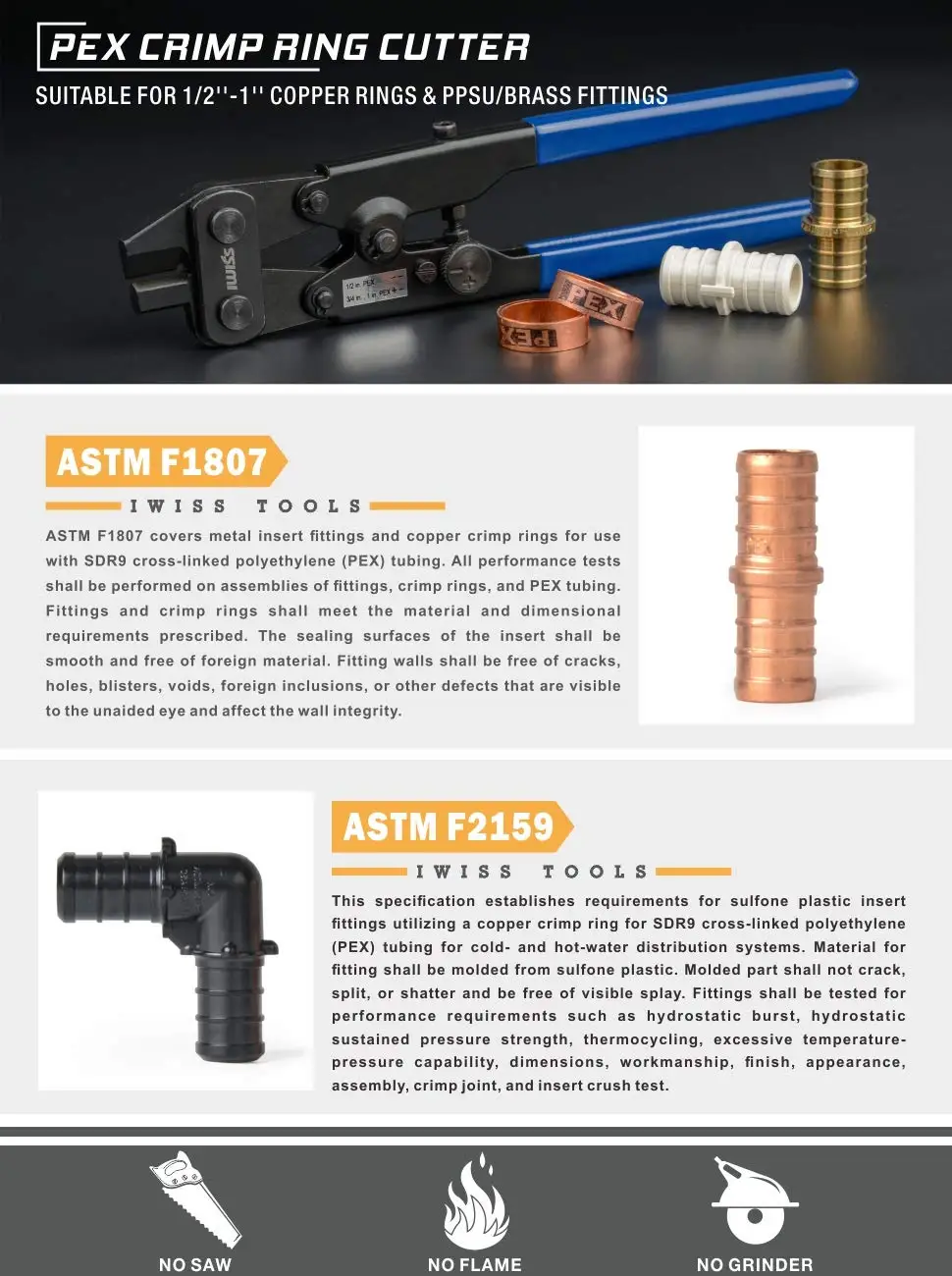 Позволяет повторно использовать дорогие фитинги Pex Режет Pex медь обжимное кольцо в размерах 1/2 ", 3/4" и 1 "; Удаление неправильно гофрированная медь PEX обжимное кольцо Используется на латунных фитингах PEX. Не используйте для удаления пластмассовых или медных соединений PEX. Сверхмощный инструмент для удаления WaterPEX обжимное кольцо, не повреждая латунные фитинги PEX