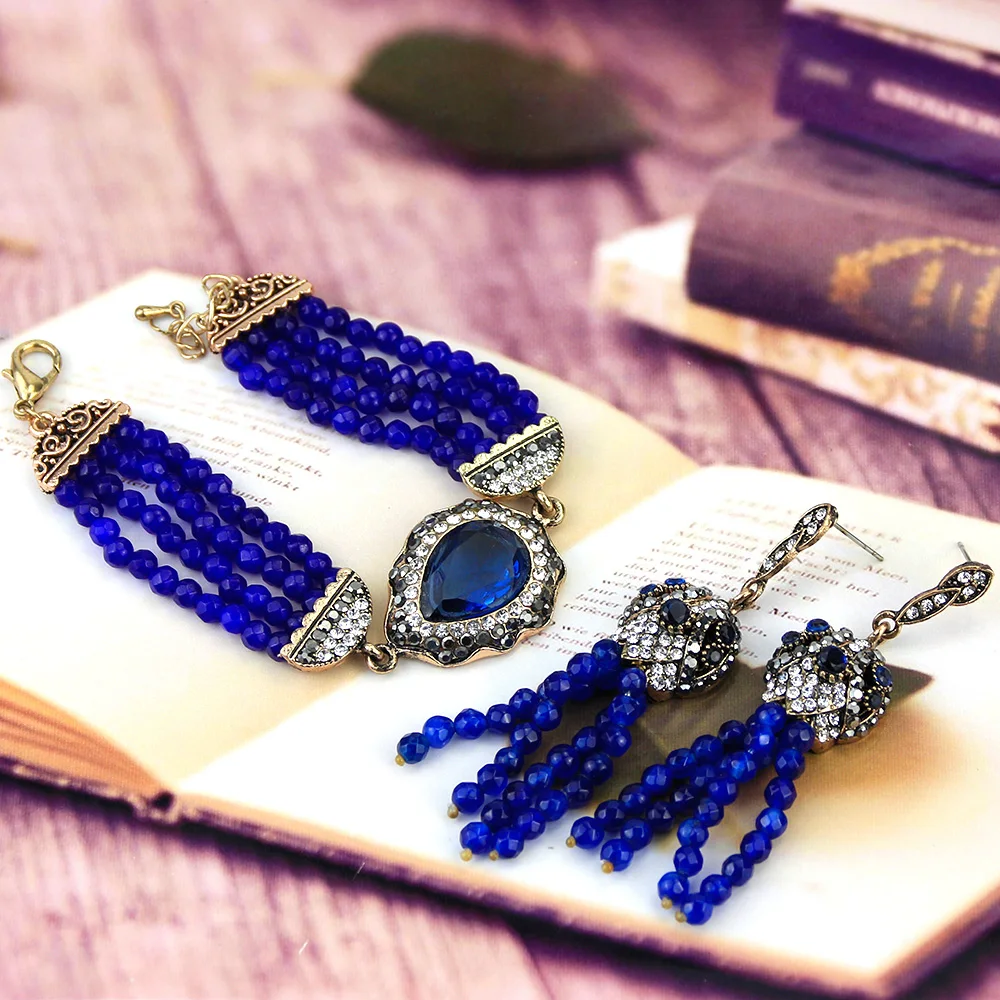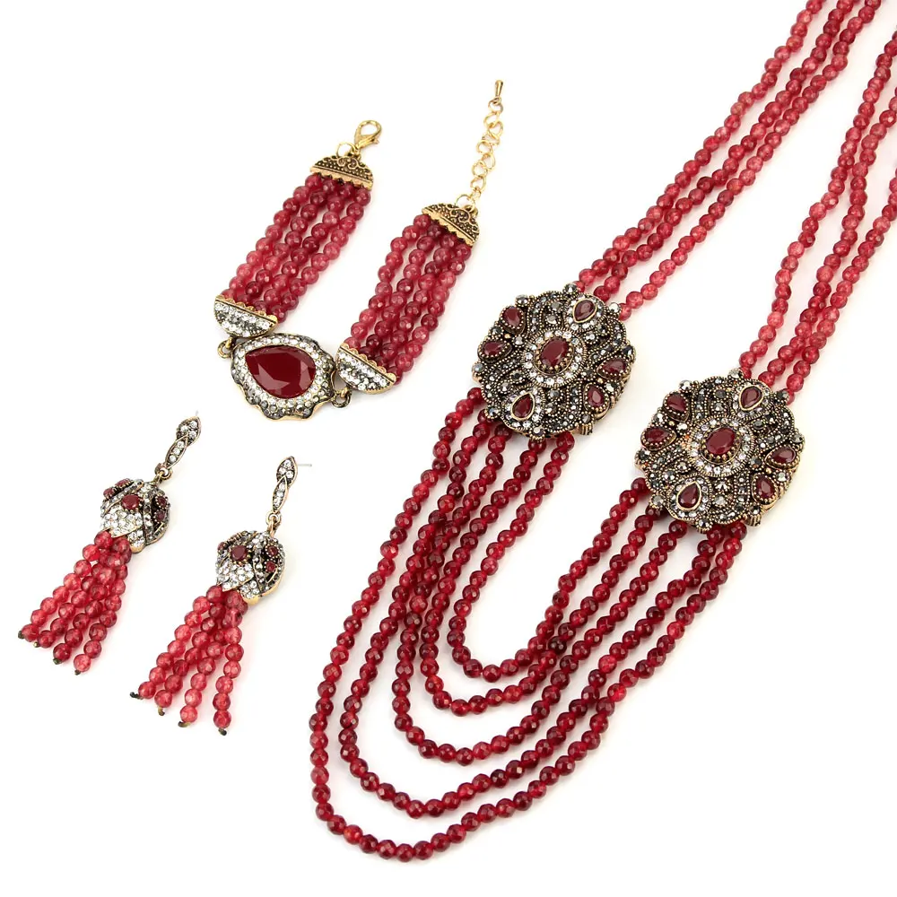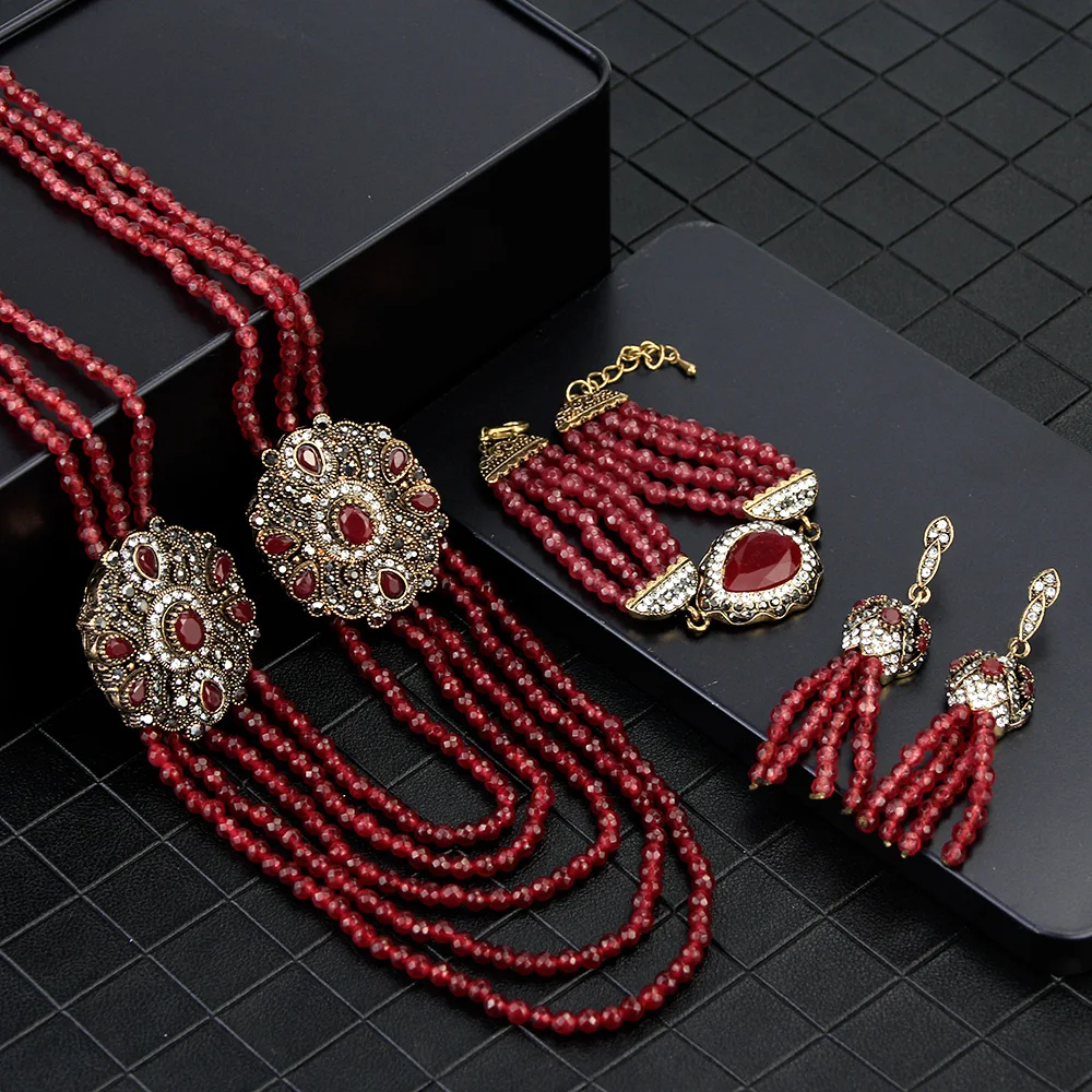 «Описание продукта: Комплект ювелирных изделий ручной работы из африканских бусин, серьги, ожерелье, браслет для женщин, Турецкий Дизайн, ретро золотой цвет, ювелирный подарок”
