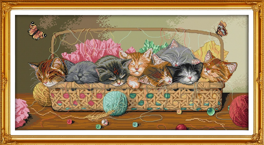 Joy Sunday Новорожденные котята в корзине Наборы для вышивки крестиком ручная работа вышивка с таблицей