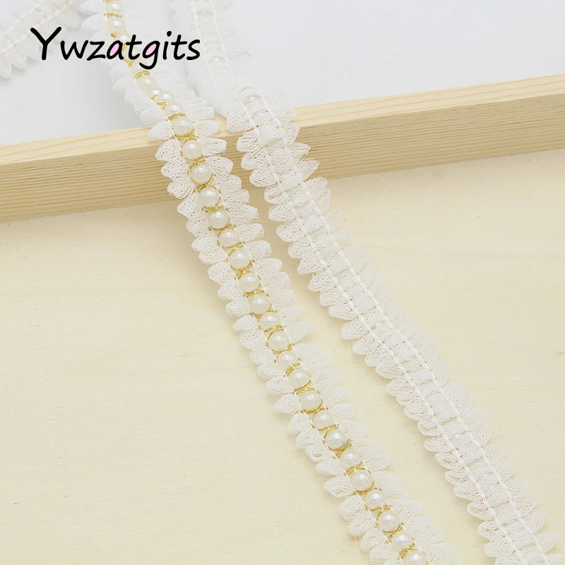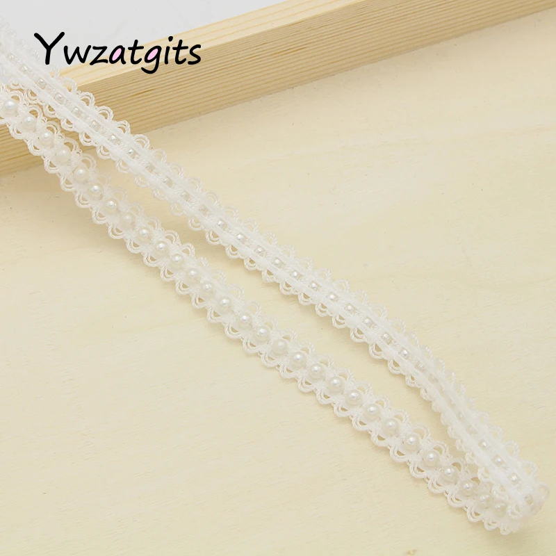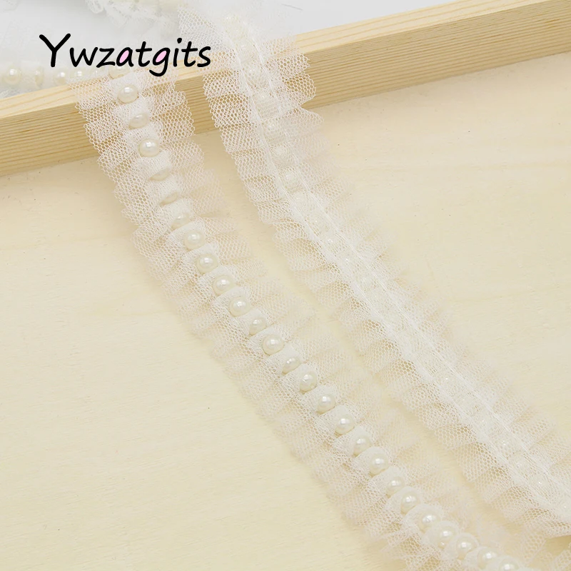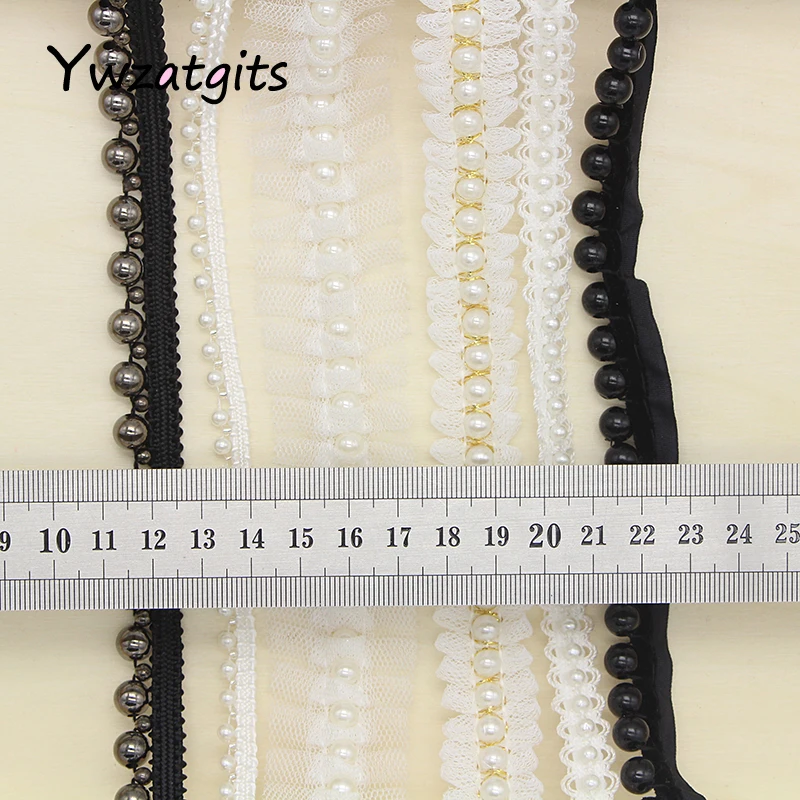 Ywzatgits 1 ярд/партия, кружевные ленты с отделкой бисером из тюля, аппликация из жемчуга, аксессуары для одежды YN0301
