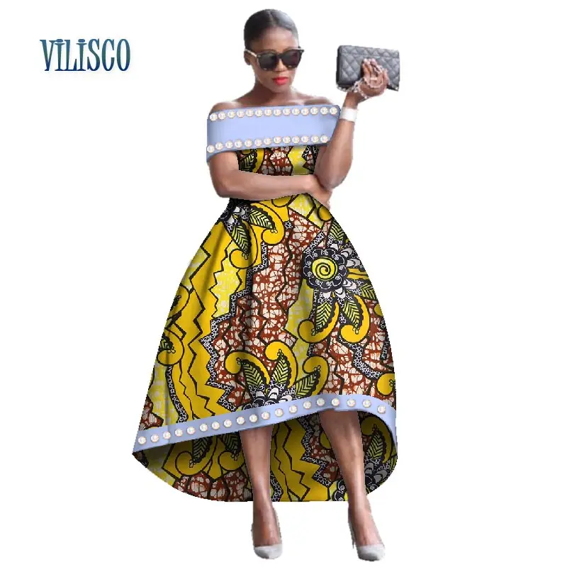 Африканские платья для женщин Базен риче, вечерние длинные платья с бусинами, имитация жемчуга, Vestidos размера плюс, африканская женская одежда WY2589
