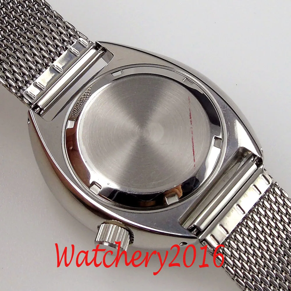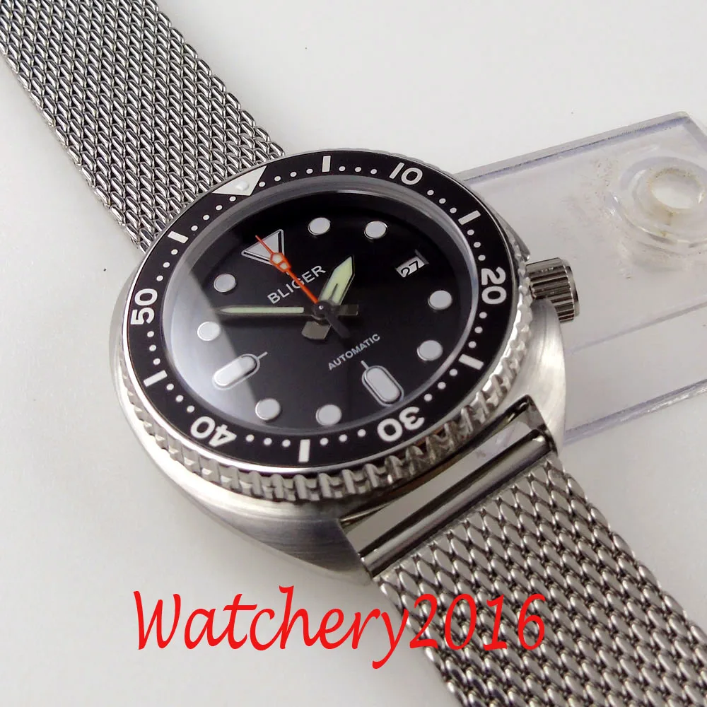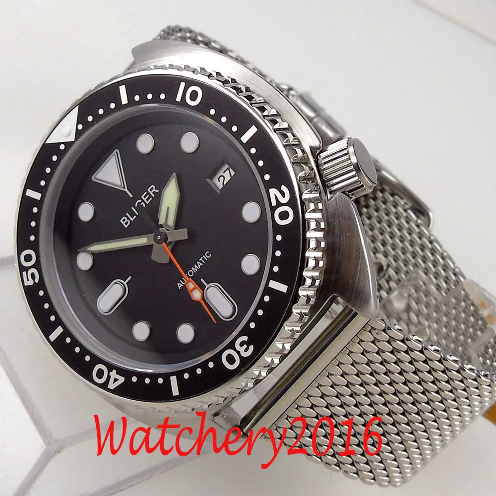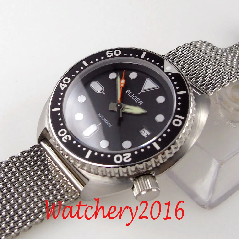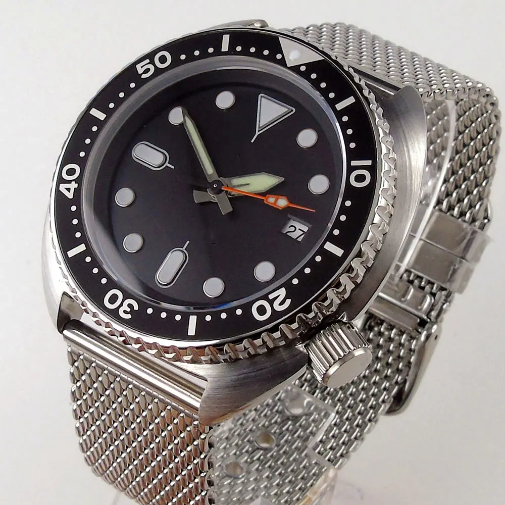 Механизм: автоматический (самонамоточный) механизм; Циферблат: черный циферблат; Дата в 3 часа; Чехол: Твердый чехол из нержавеющей стали 316L. Чехол Диаметр: 45 мм без короны Чехол Толщина: 14 мм. Ремешок: стальной ремешок шириной 22 мм. Тип застежки: пряжка на булавке. Стекло: стекло.