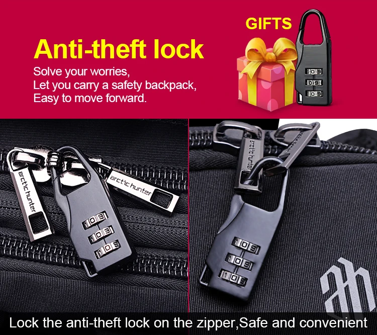 Замок с защитой от краж Решить ваши проблемы, Замок Противоугонный замок на застежке-молнии, и переноске рюкзак легко и безопасно