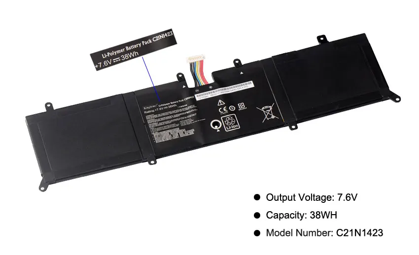 Емкость: 38WH Напряжение: 7,6 В Тип батареи: литий-полимерный Ячейка: Сделано в Китае, гарантия высокого качества Цвет: черный Состояние: сменный аккумулятор (100% новый, 2 года гарантии!) Замените номер детали: C21N1423 Совместимая модель ноутбука: Для ASUS X302L X302LJ X302LA R301LA F302LJ F302U X302LJ-R4073/R4036H Фотографии: