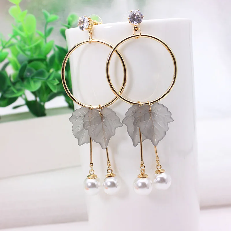 2017 мода бренд ювелирные изделия жемчуг лето стиль большой круг серьги-гвоздики для женщин листья кристалл подарок серьги Бесплатная доставкаСША 3.99 долл. США