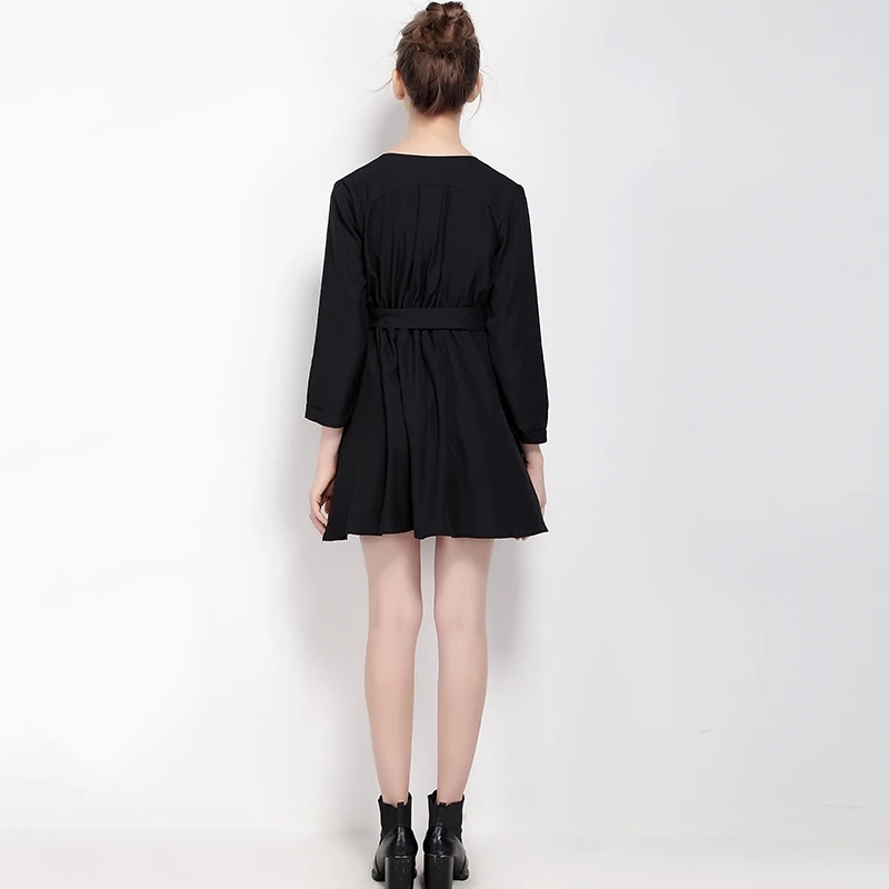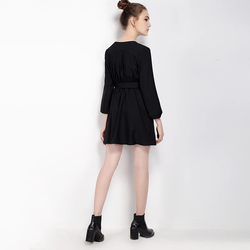 HDY Haoduoyi, Брендовое платье 2017, женское черное Повседневное платье с запахом, приталенное платье с завязками на талии, офисное платье трапециевидной формы | |||||||||||||||||||||||||||||||||||||||